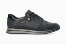 LEENIE van MEPHISTO: Een must-have voor alle sneakerfans. De voering is van leer met een vleugje textiel voor extra comfort. Deze zwarte damessneaker is gemaakt van glad generfd leer over de hele voet, met inzetstukken van metallic leer met glittereffect en gekreukt lakleer.