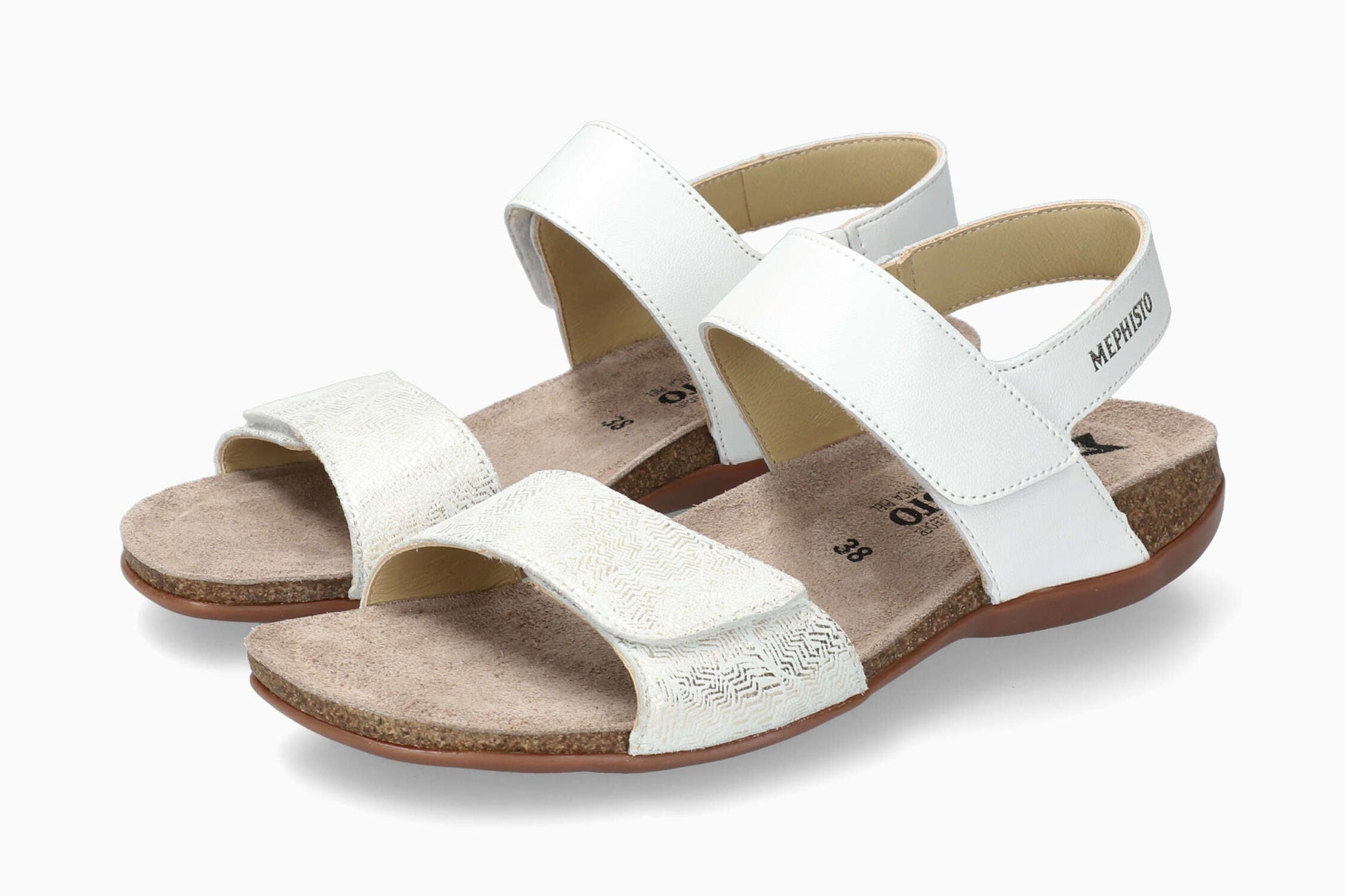 MEPHISTO AGAVE | Damen Korkfußbettsandalen Weiss Leder Metallik-look