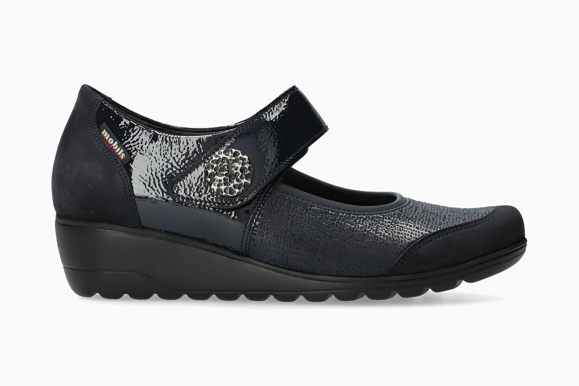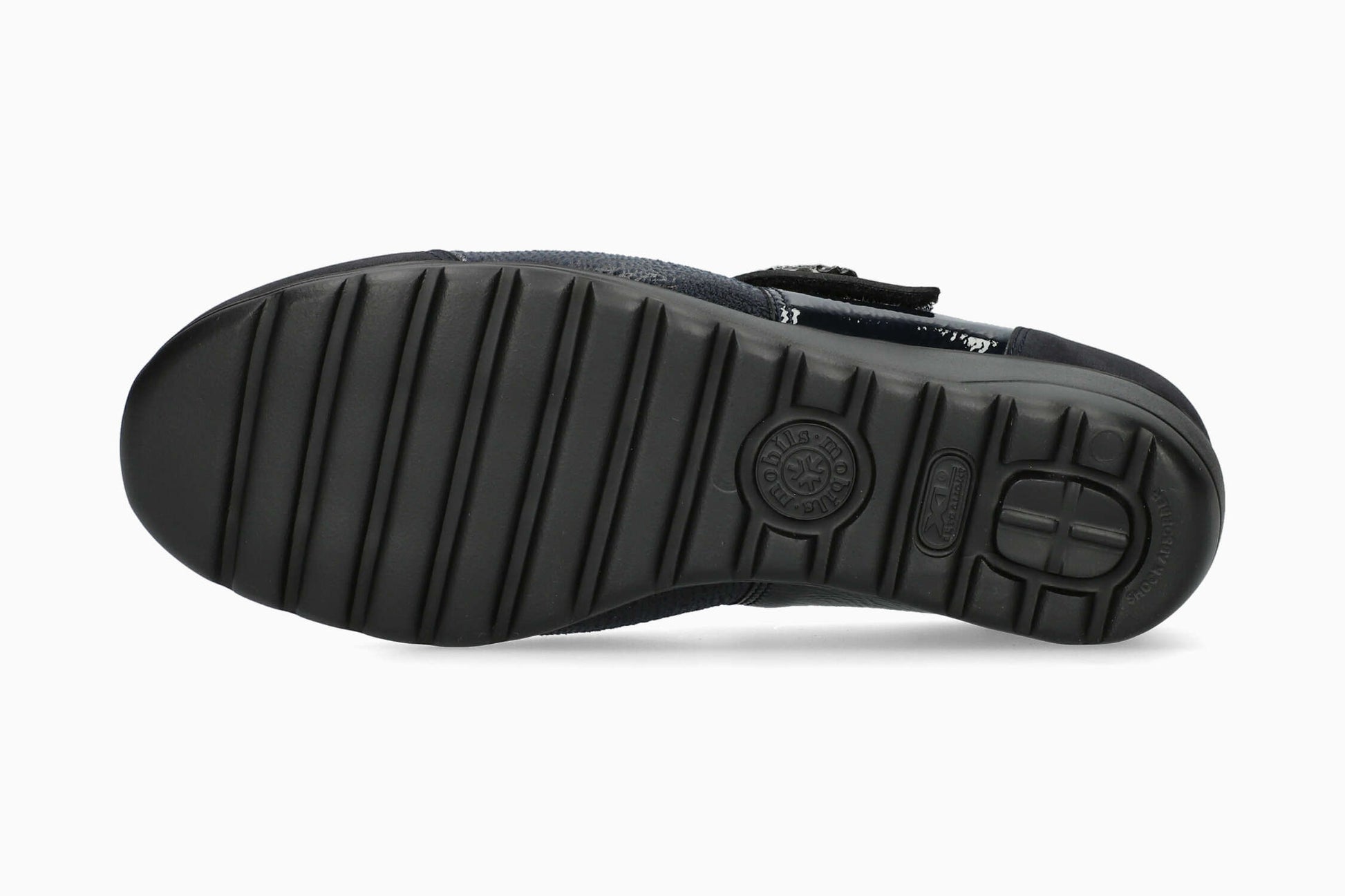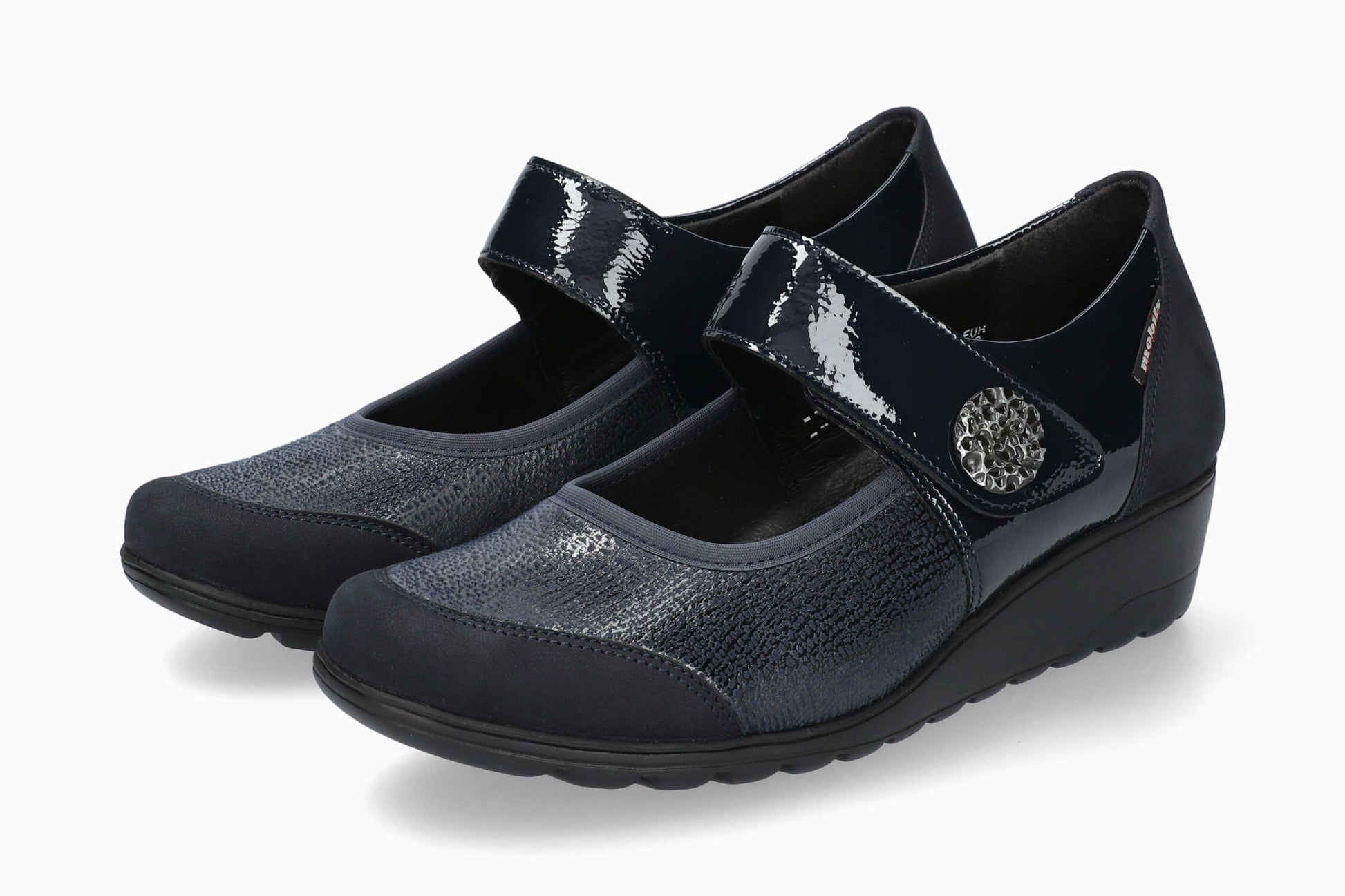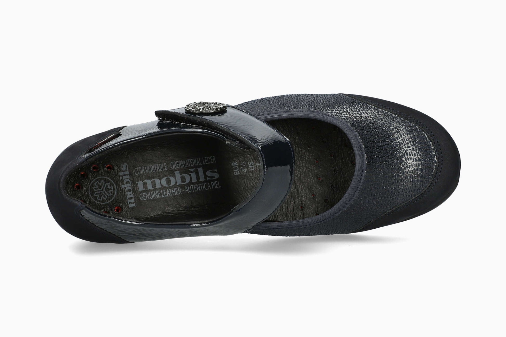 MOBILS BATHILDA | Damen Ballerinas Dunkelblau Textil Leder Metallischer Phantasiedruck