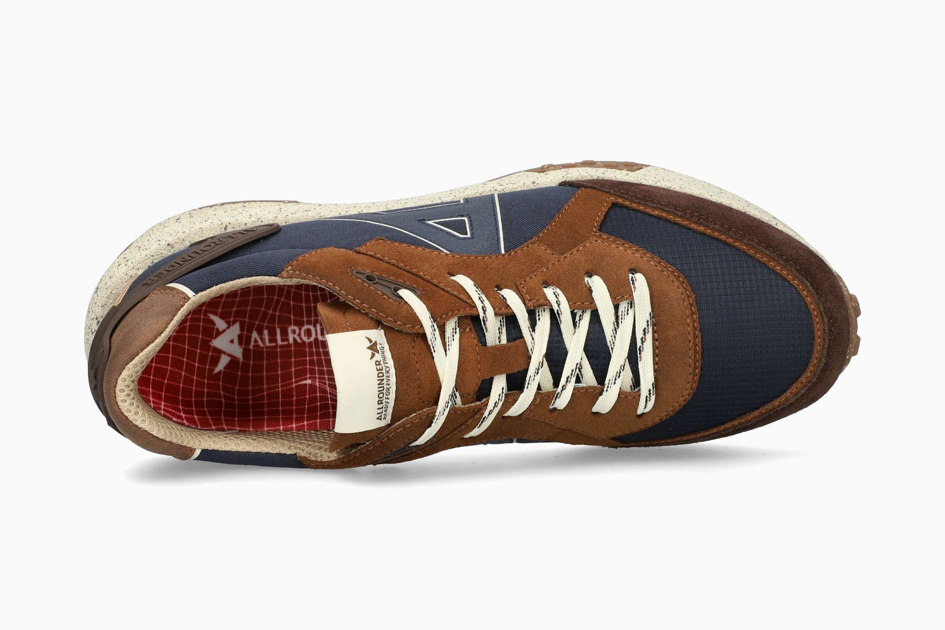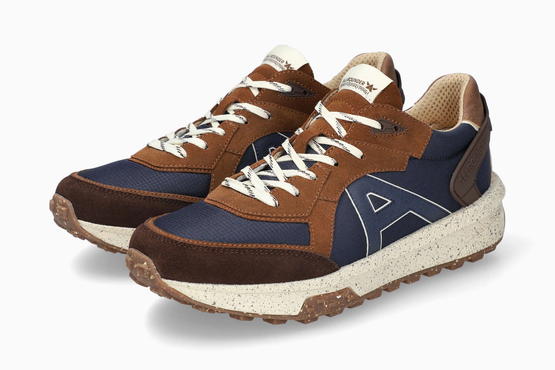 Modell BLEND von ALLROUNDER: Schuhe, die man im Alltag tragen kann. Mit einem sportlichen Look, neuen Materialien und in verschiedenen Farben, um Ihren Favoriten zu finden. Dieser Herrenschuh in einem schönen Braun und Blau zeichnet sich durch sein Design und die Qualität von Velours und Textilien aus.