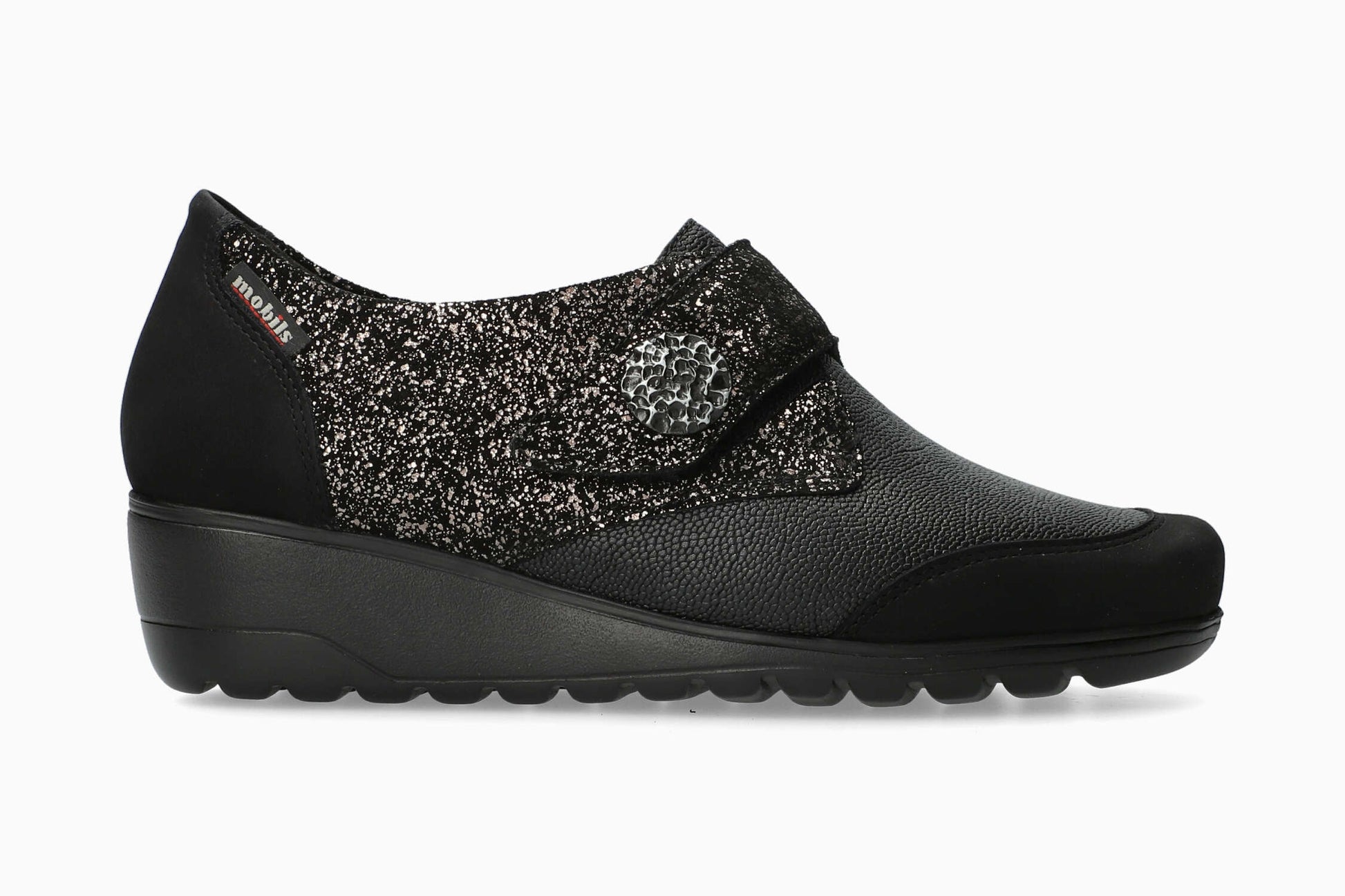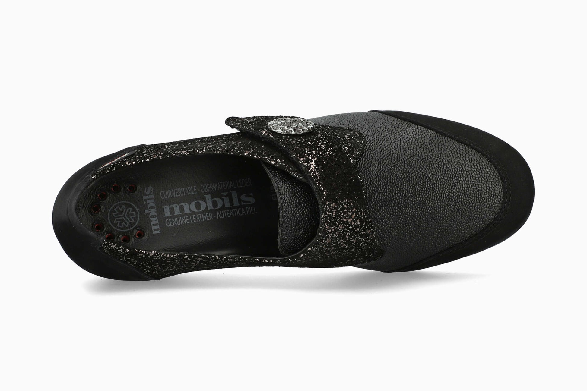 MOBILS BRANDA | Damen Absatzschuhe Schwarz Textil Leder Metalliklook Mit Struktur