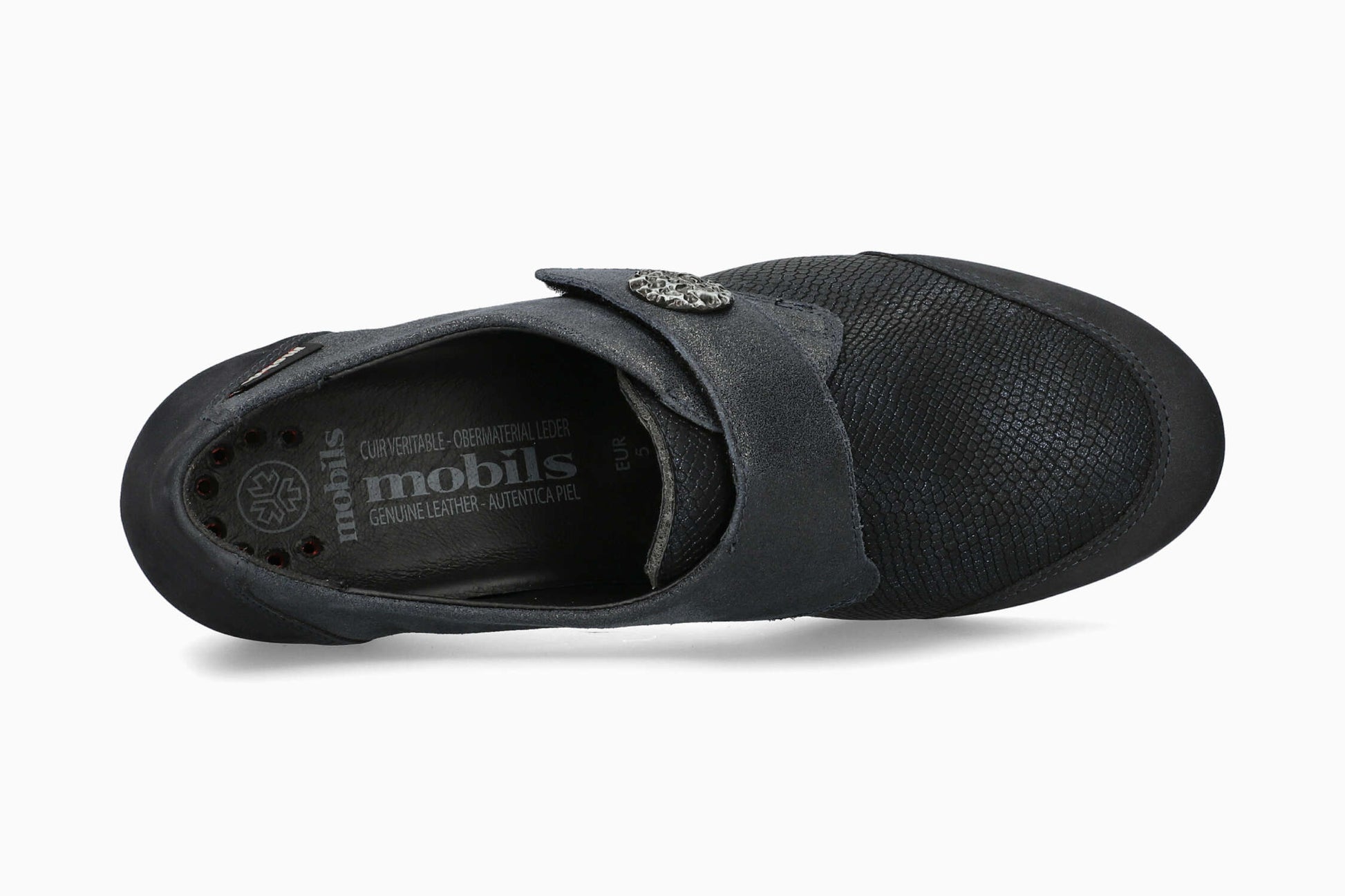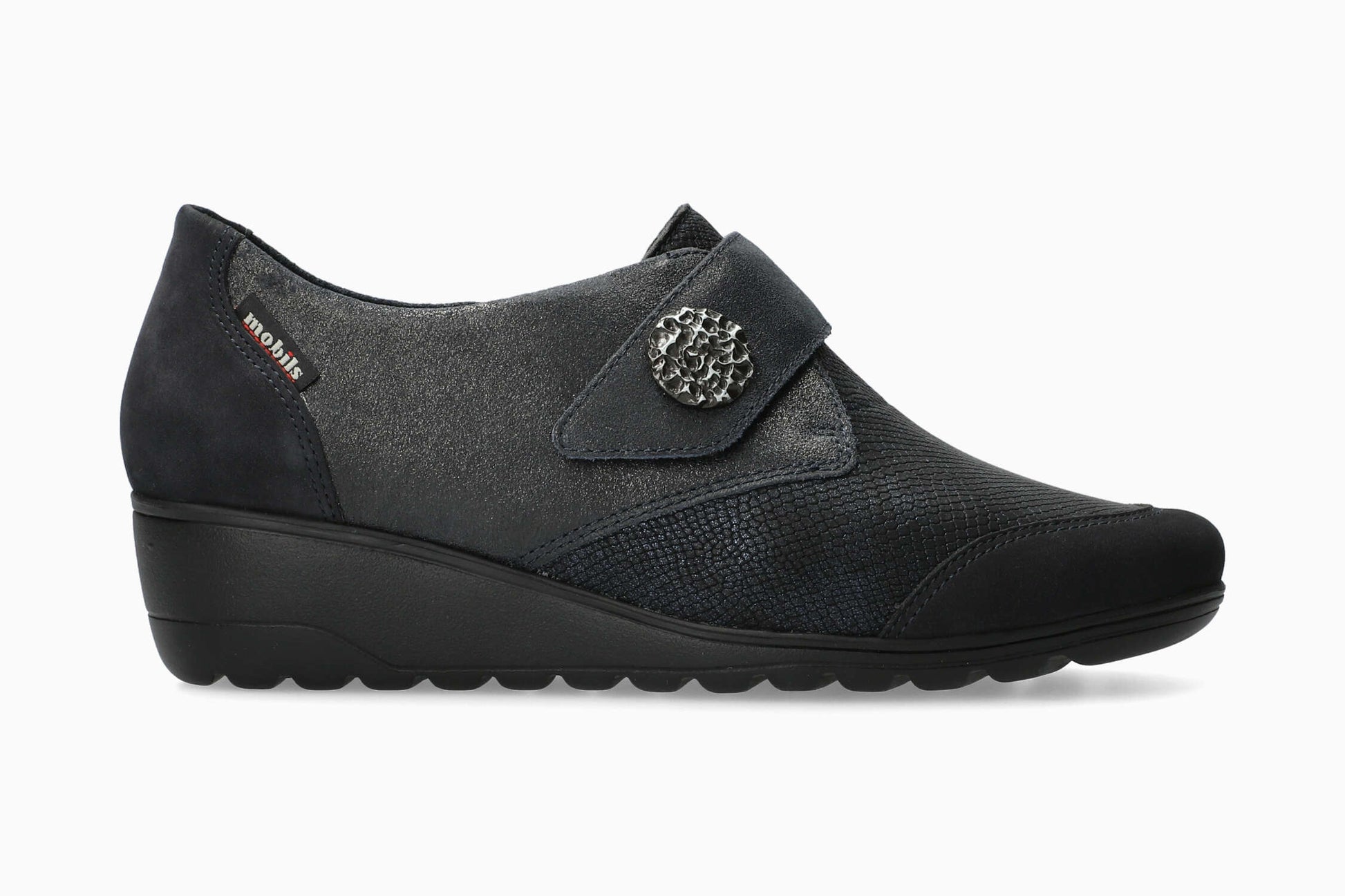 MOBILS BRANDA | Women Dress Shoes Dark Blue TextileLeather Metallic Reptile Print