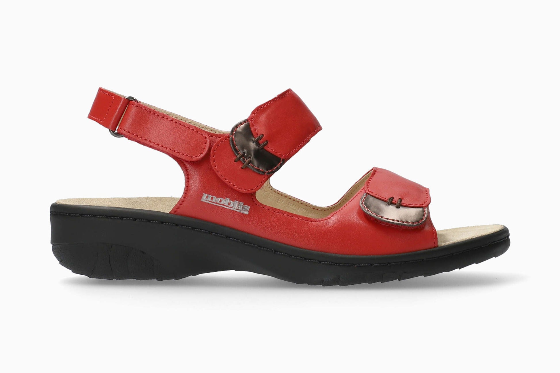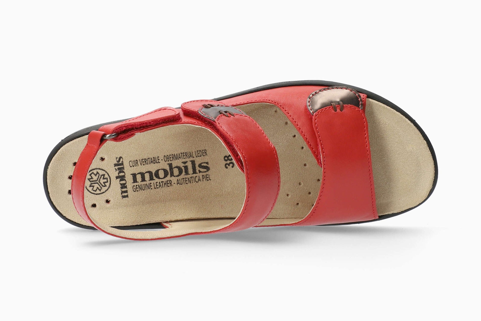 MOBILS GETHA | Damen Sandalen Rot Leder Textil Glatt