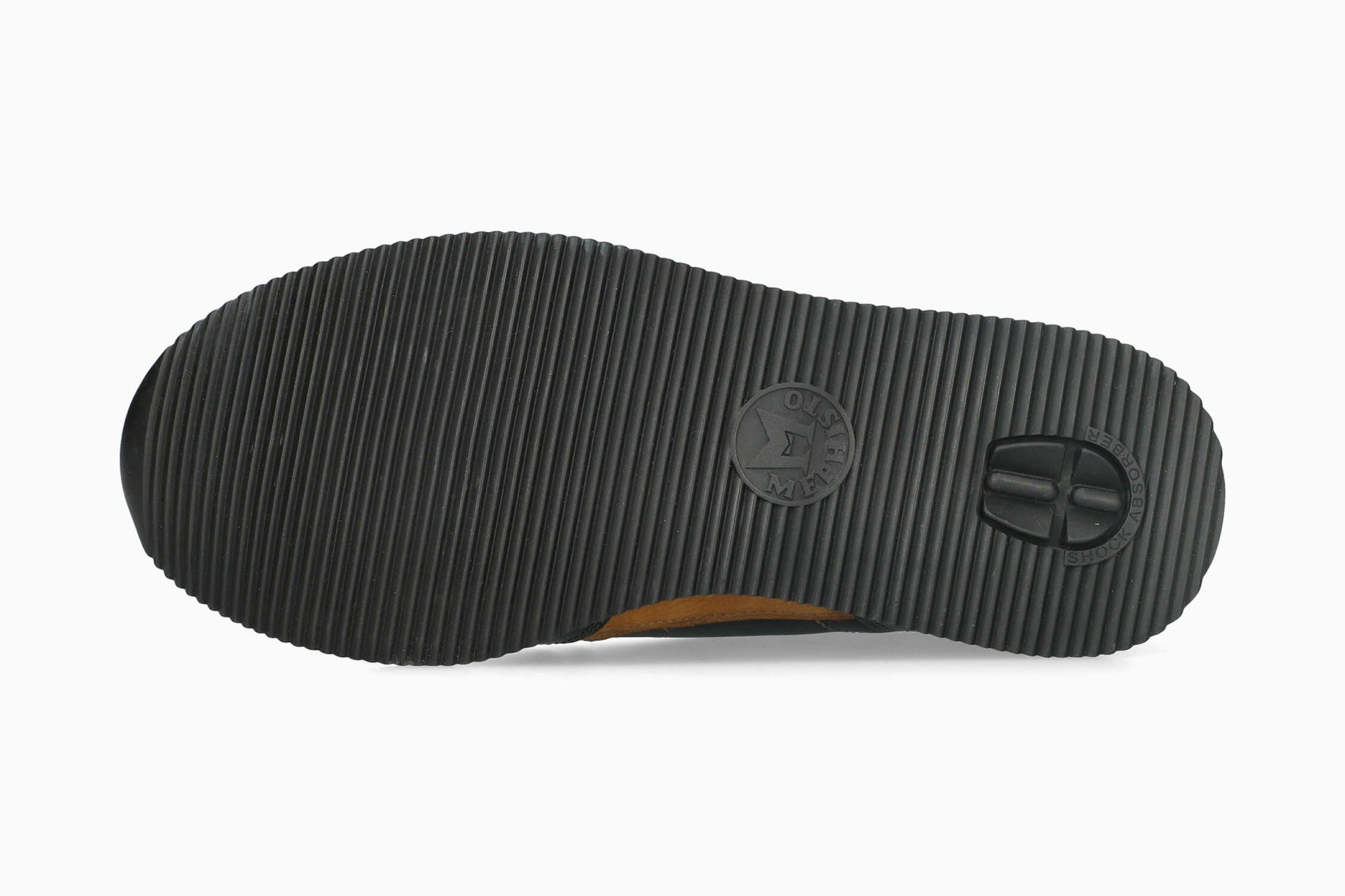 Modell GILFORD der Marke MEPHISTO: Dieser Sneaker nimmt die Herbst- und Winterausflüge mit höchstem Komfort an. Das Textil-Leder-Futter garantiert eine optimale Passform und perfekten Halt für den Rist und die Achillesferse. Dieses blaue Herrenmodell kombiniert Glattleder über den gesamten Fuß mit Einsätzen aus glattem genarbtem Leder und genarbtem Nubukleder.