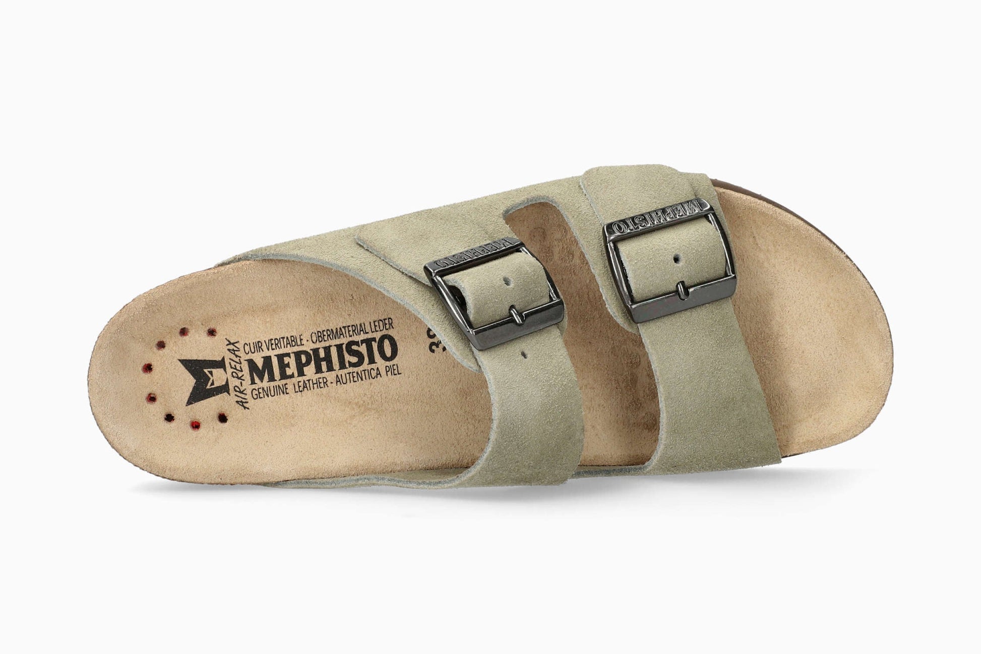 MEPHISTO HESTER | Damen Korkfußbettsandalen GrÜn Leder Veloursleder