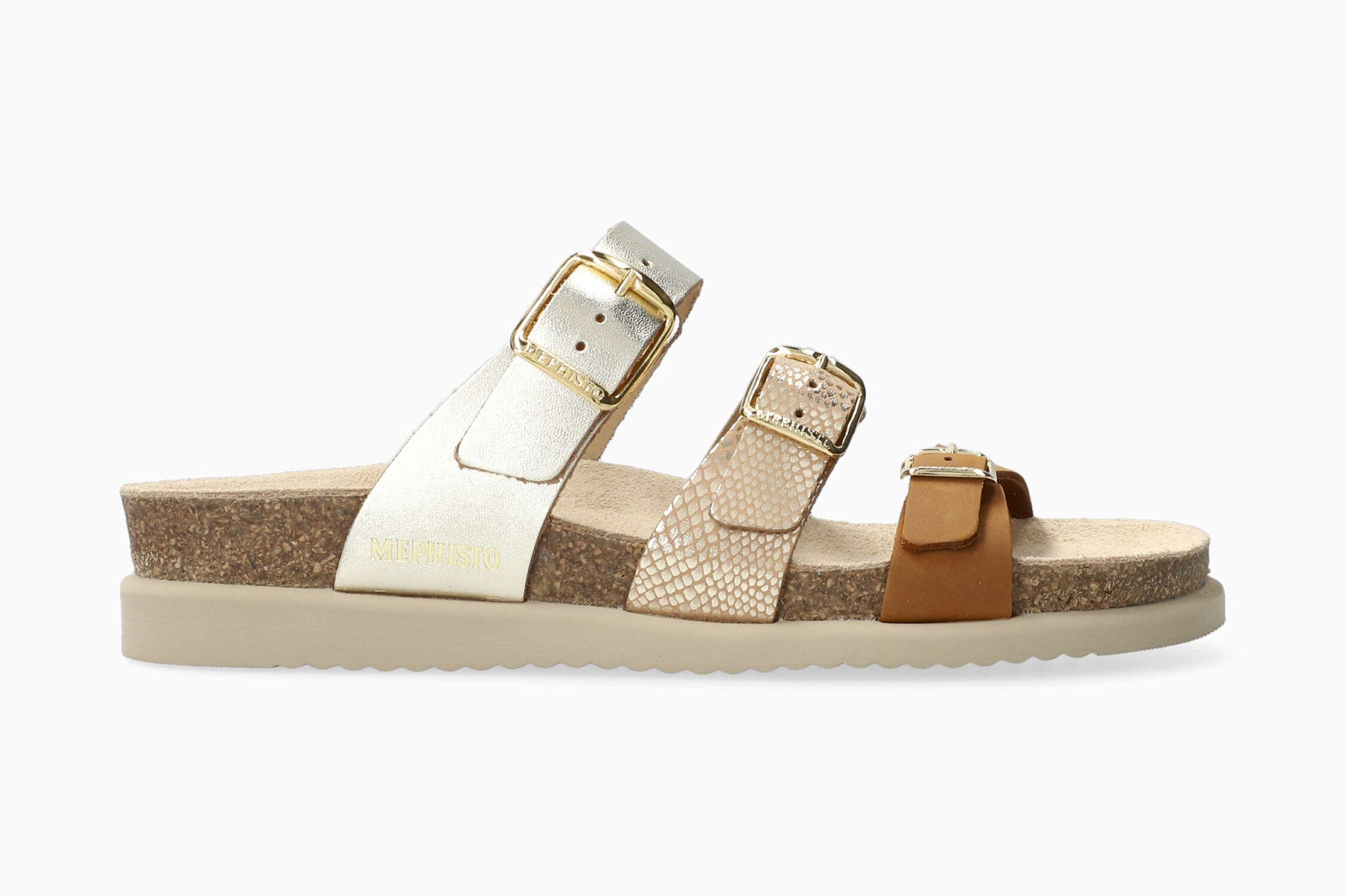 MEPHISTO HYACINTA | Damen Korkfußbettsandalen Beige Leder Animal-print