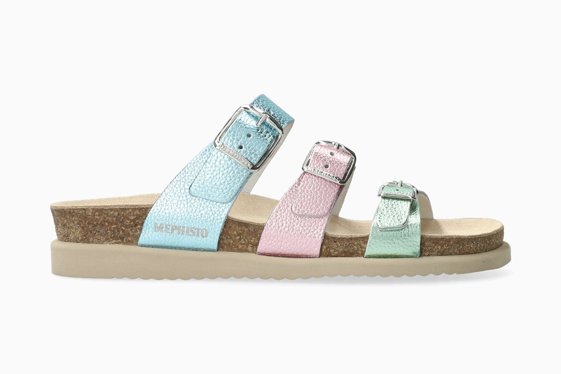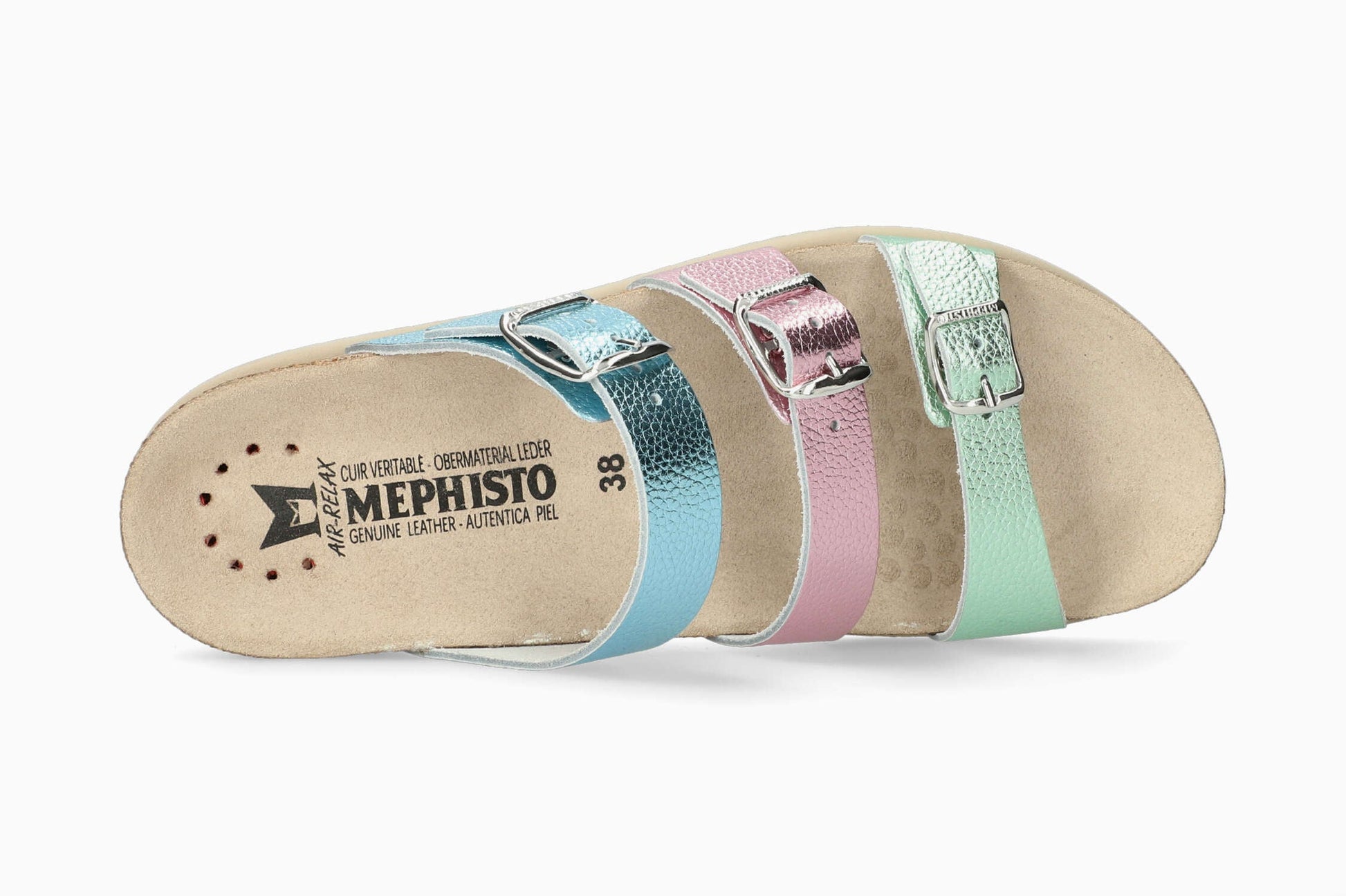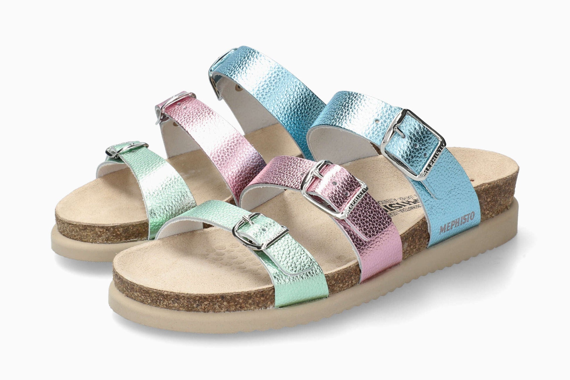 MEPHISTO HYACINTA | Damen Korkfußbettsandalen GrÜn Leder Metalliklook Mit Struktur