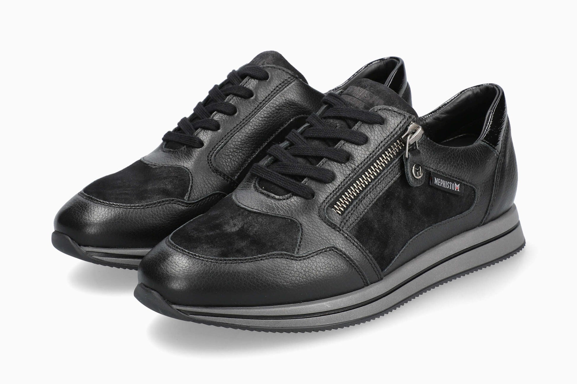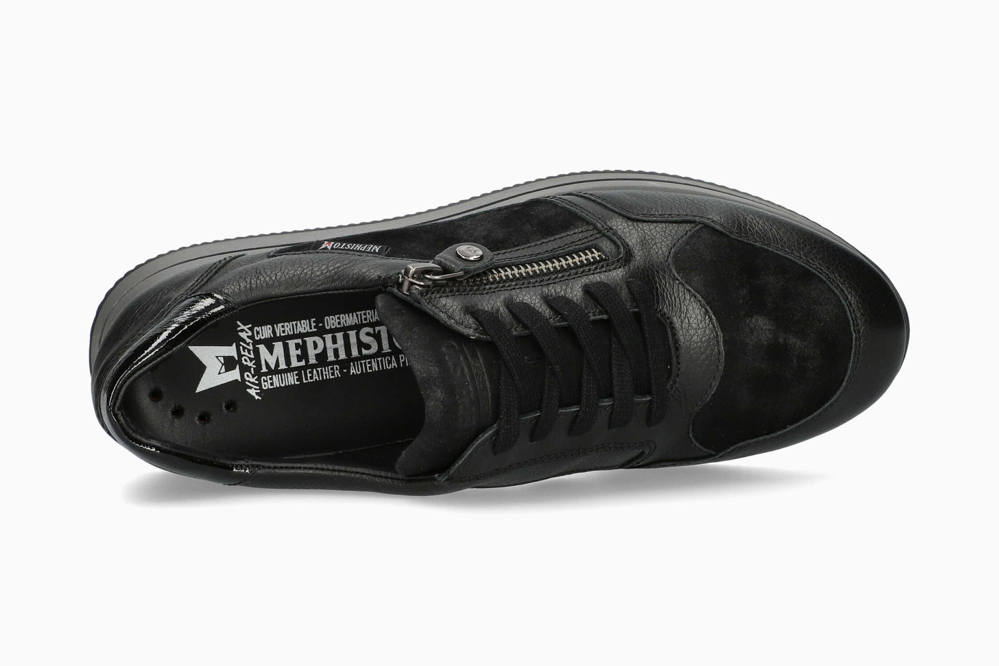 MEPHISTO LEENIE | Damen Sneaker Schwarz Leder Knitter-effekt