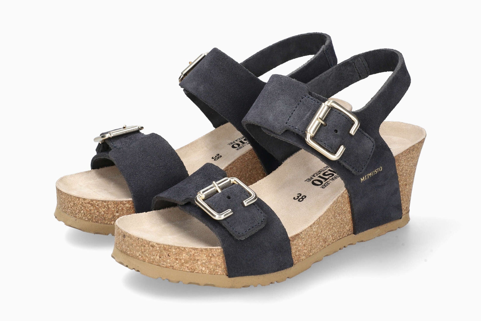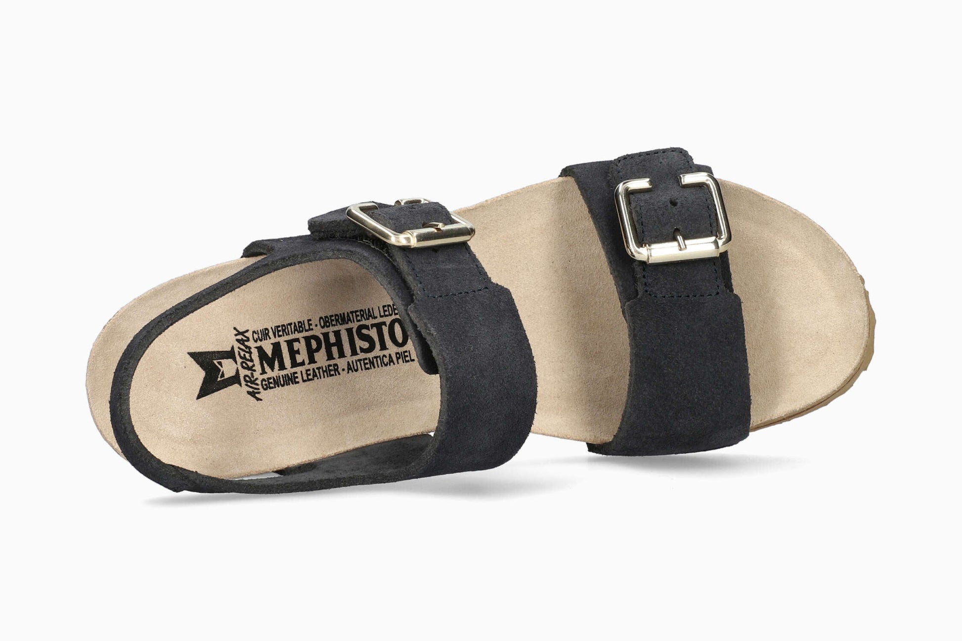 MEPHISTO LISSANDRA | Damen Korkfußbettsandalen Dunkelblau Leder Veloursleder