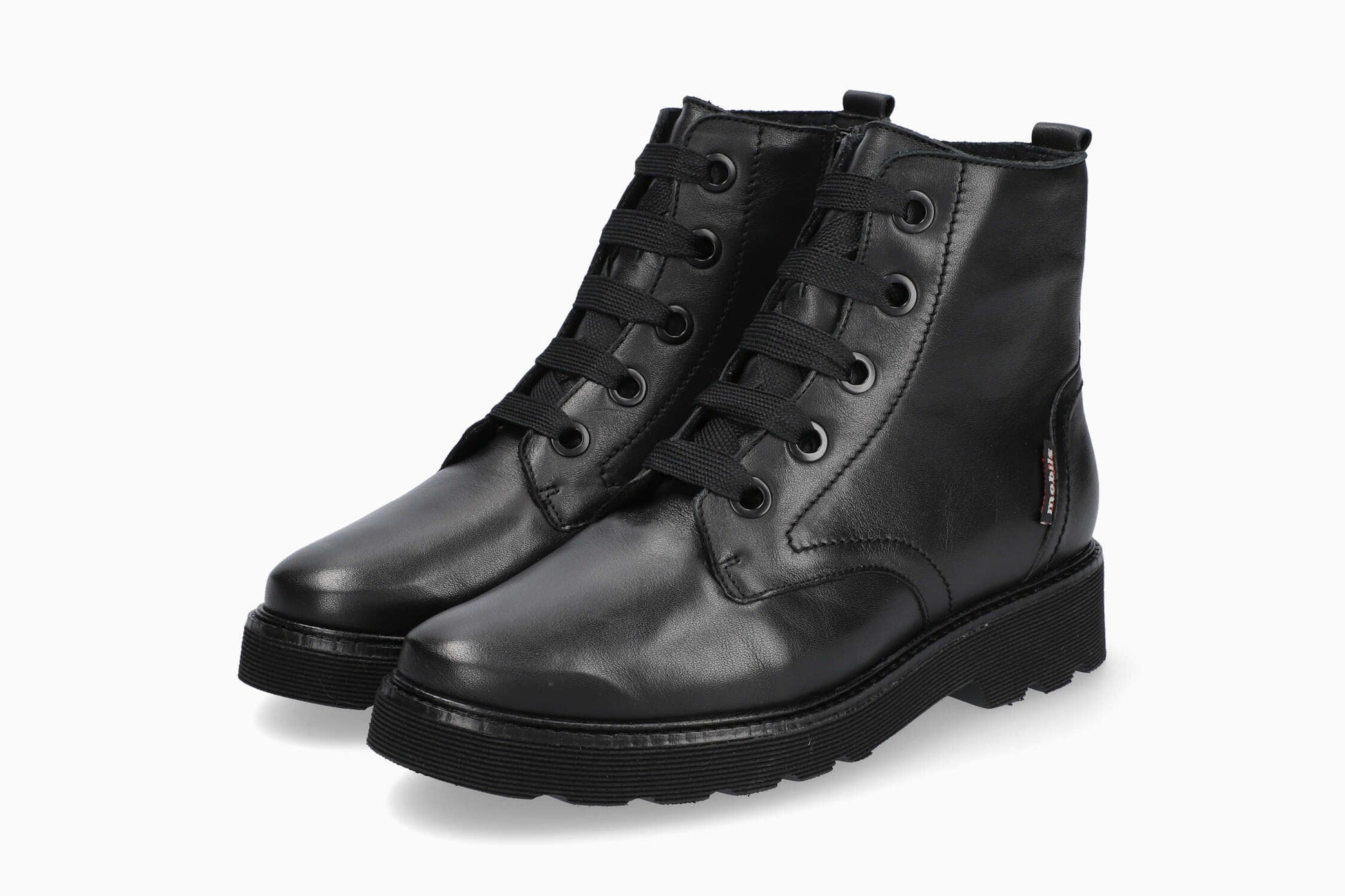 Dieser moderne und bequeme Stiefel wird all Ihren Wünschen gerecht. Das Wechselfußbett mit SOFT-AIR-Technologie und der SCHOCKABSORBER auf der Laufsohle tragen dazu bei, Auftrittsstöße auf ein Minimum zu reduzieren und sorgen für einen moosweichen, ermüdungsfreien Gang. Die RUNDUM-POLSTERUNG sorgt für eine unvergleichbare Passform. Ein Seitenreißverschluss zusätzlich zur Schnürung ermöglicht einen einfachen Einstieg in den Schuh. Bei kaltem Wetter sorgt das weiche, warme Futter für thermischen Komfort des Fußes. Diese schwarze Stiefelette für Damen besteht aus Glattleder.