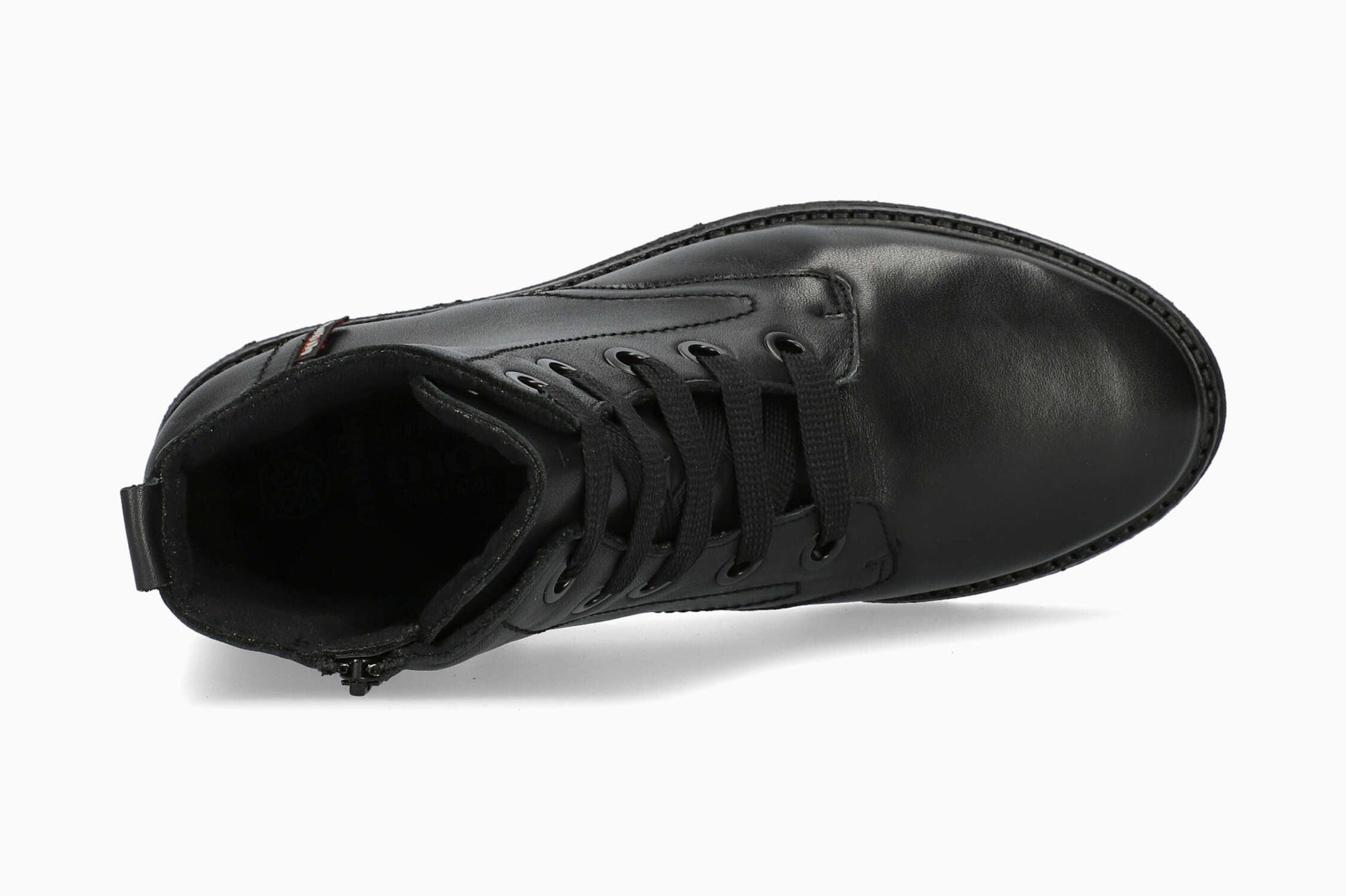 Modell ODALIA der Marke MOBILS: Diese moderne und bequeme Stiefelette wird all Ihren Wünschen gerecht. Bei kaltem Wetter sorgt das weiche, warme Futter für thermischen Komfort des Fußes. Diese schwarze Stiefelette für Damen besteht aus Glattleder.