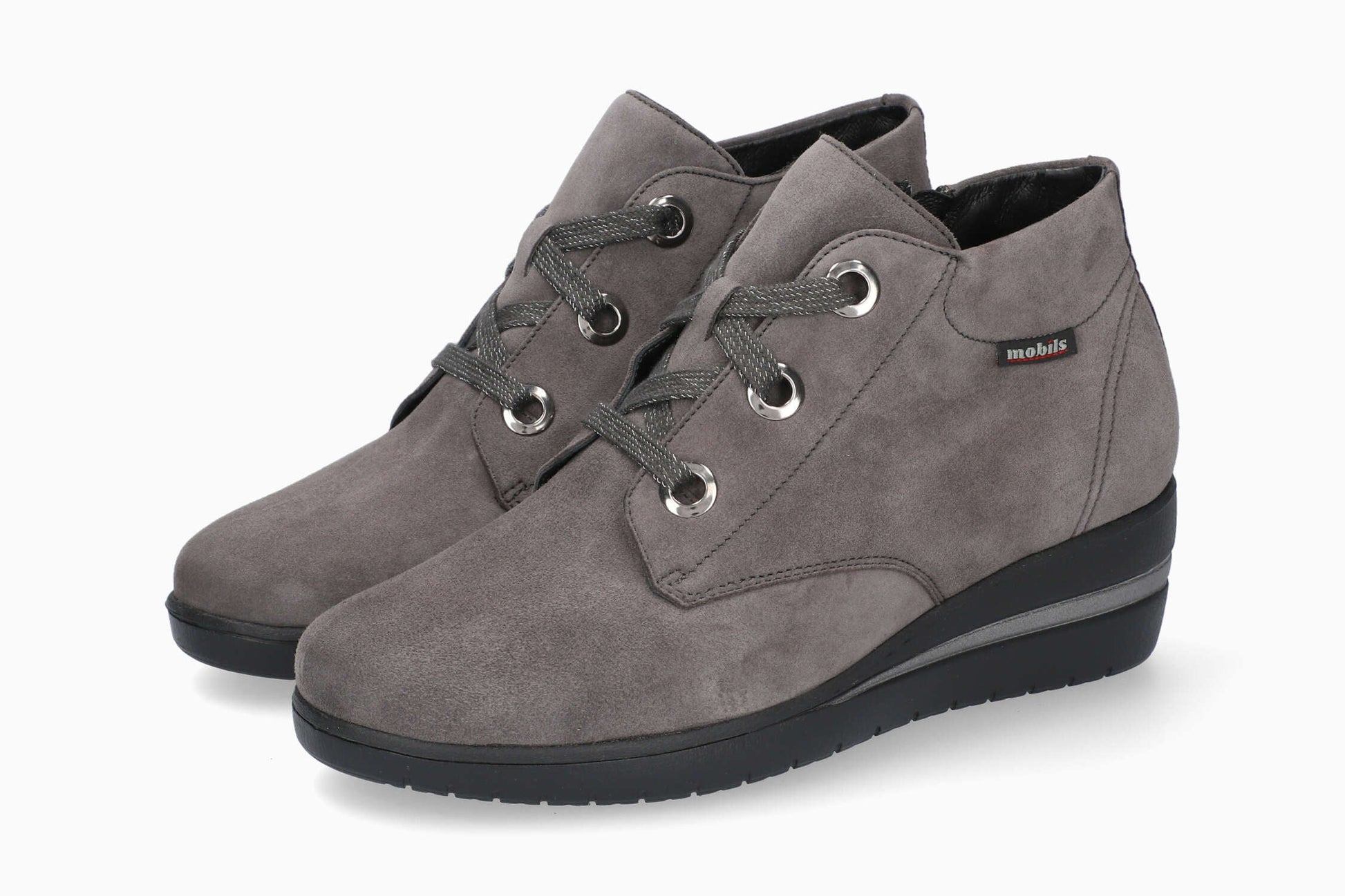MOBILS PERYNE | Damen Absatz Stiefeletten Grau Leder Veloursleder