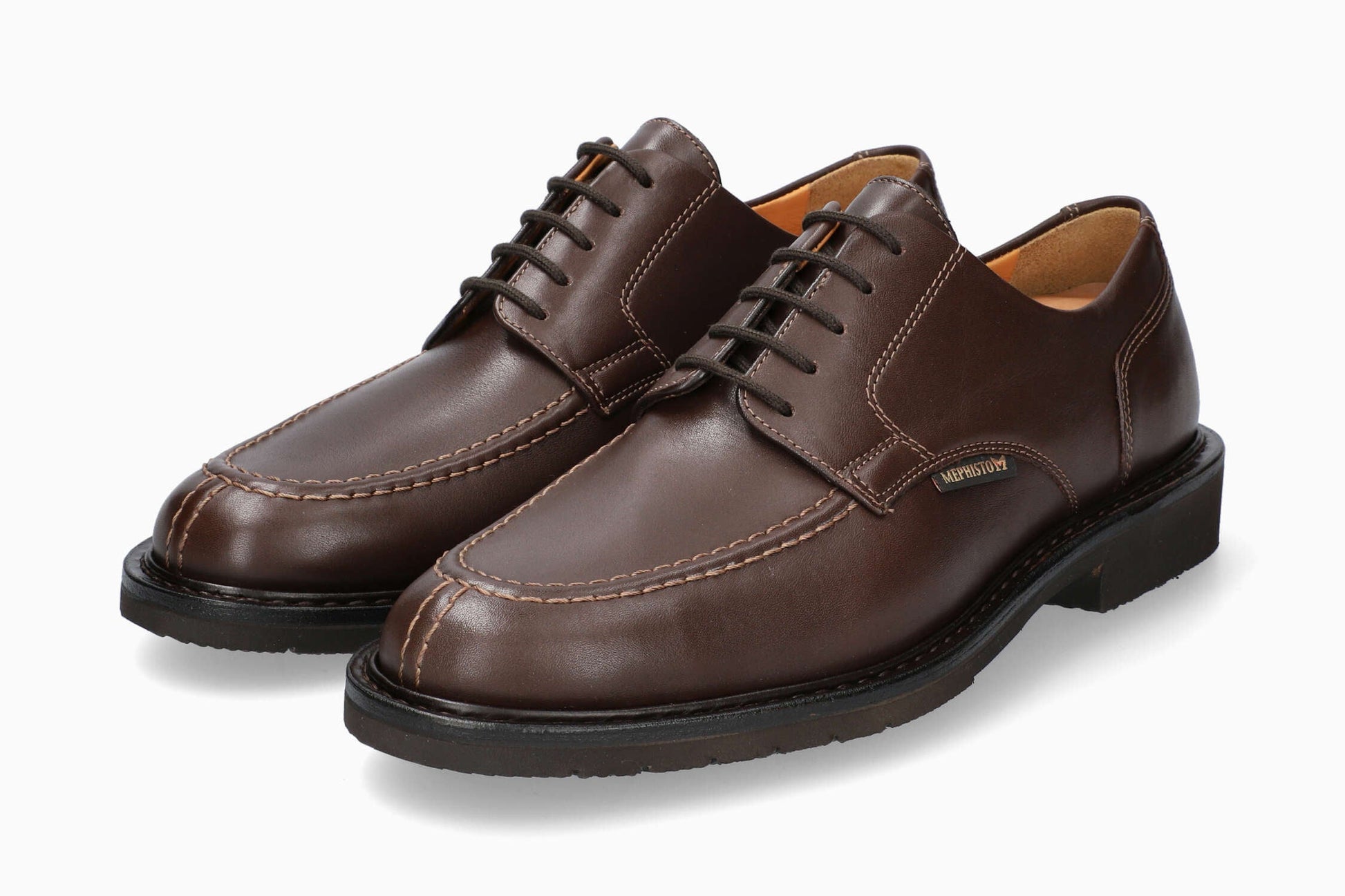 Modell PHOEBUS der Marke MEPHISTO: Dieses Goodyear-welted-Modell ist von außergewöhnlich guter Qualität und bietet einen optimalen Komfort. Dieser braune Herren-Derby besteht aus Glattleder.