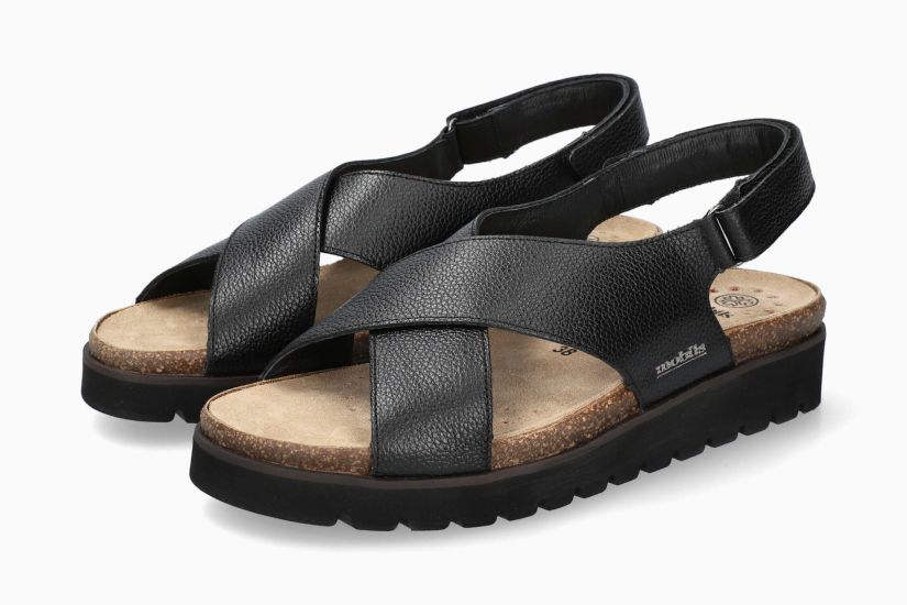 MOBILS TALLY | Damen Sandalen Schwarz Leder Knitter-effekt