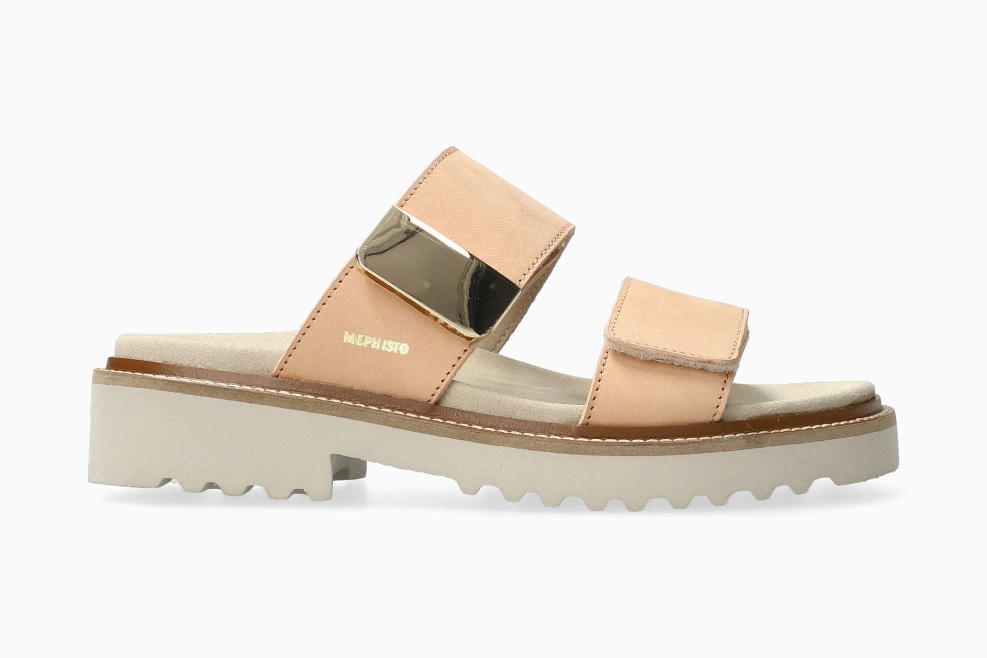Modell VONNY der Marke MEPHISTO: Diese Sandale passt sich jedem Stil und jeder Stimmung an. Ihr Lederfutter sorgt für ein gesundes Klima im Inneren des Schuhs. Diese orangefarbene Sandale für Damen besteht aus Nubukleder.