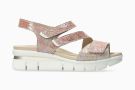 Modell RICIA der Marke MEPHISTO : Diese leichte Sandale im lässigen und sportlichen Stil ist ein Muss für einen entspannten Sommer. Sie vereint Komfort und perfekte Passform dank ihrer 3 verstellbaren Klettriemen. Dieses beigefarbene Damenmodell besteht aus Leder mit Metallic-Effekt und Fantasiedruck auf dem gesamten Fuß und kleinen Punkten aus weißem Leder mit Metallic-Effekt.