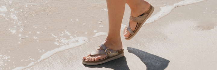 Ex. If you are between sizes, we recommend going up ½ size or 1 full size to your normal size. For example, if you are typically a size 7.5-8.0, we recommend you order a size 9. Please note: Sandals only come in full sizes.