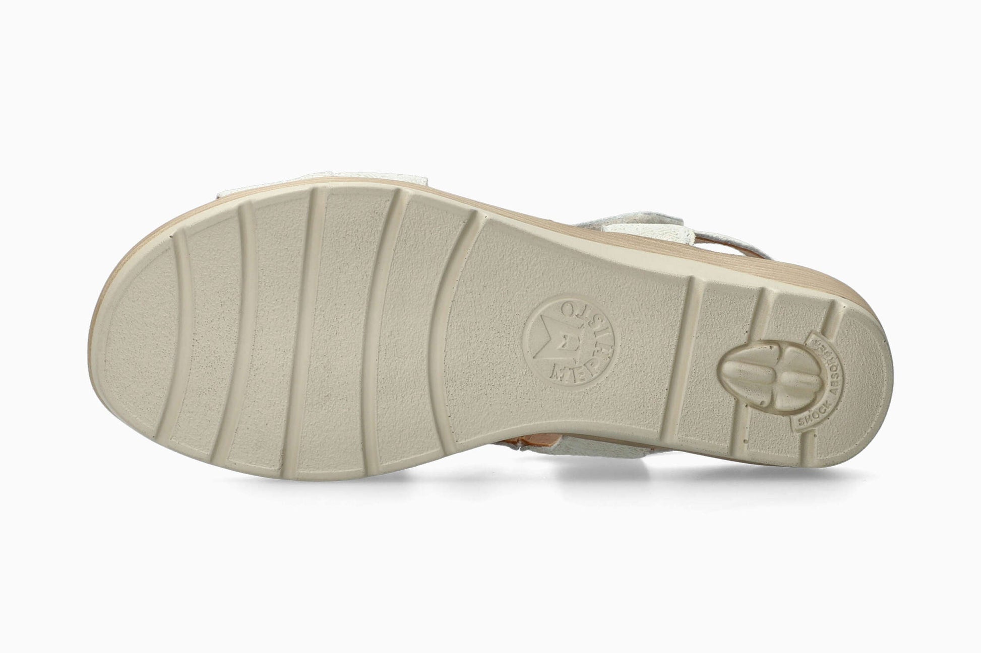 Sandale classique chic, parfaite pour un look décontracté et élégant. L'intercalaire SOFT-AIR et le SHOCK-ABSORBER intégré dans la semelle extérieure, réduisent les chocs au minimum pour une marche souple et sans fatigue. Avec la technologie AIR-RELAX, l'anatomie du pied est respectée afin d'éviter l'affaissement de la voûte plantaire. La bride, ornée d'une boucle décorative est auto-agrippante et ajustable, à laquelle s'ajoute l'élastique intérieur, offrant ainsi un excellent chaussant. Sa doublure est en cuir avec une touche de textile pour plus de confort. Cette sandale blanche pour femme est composée de cuir effet métallisé impression fantaisie.