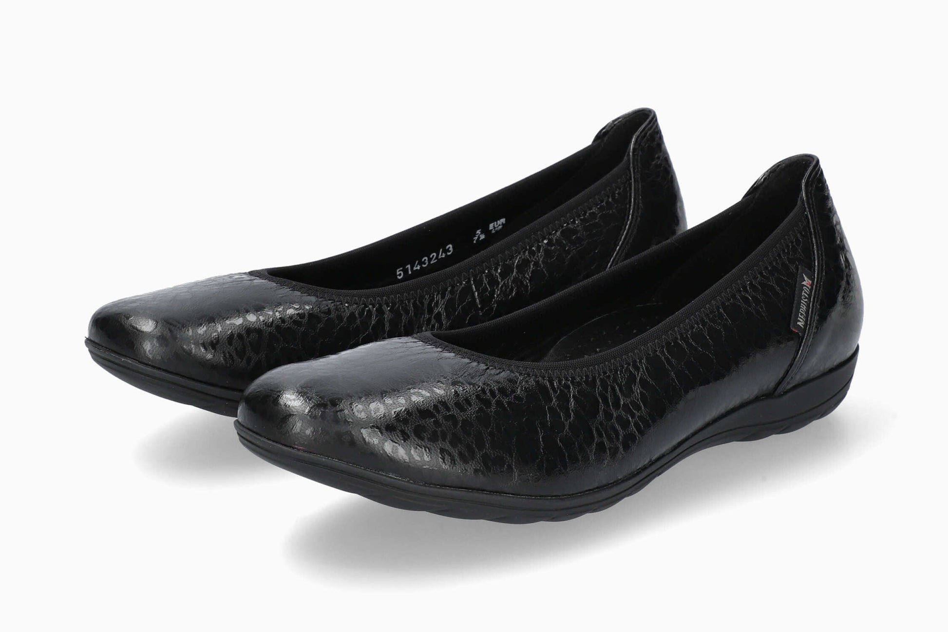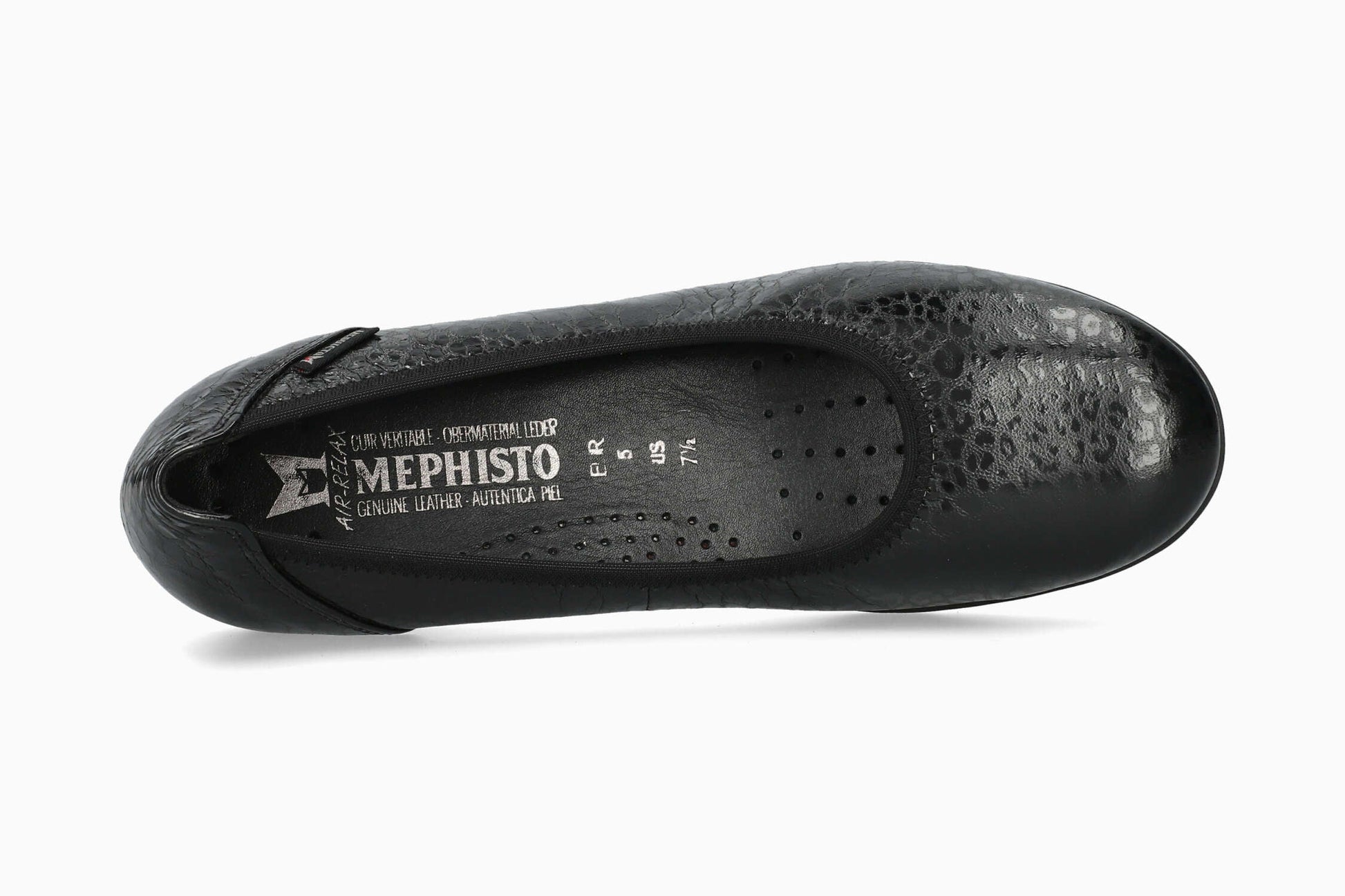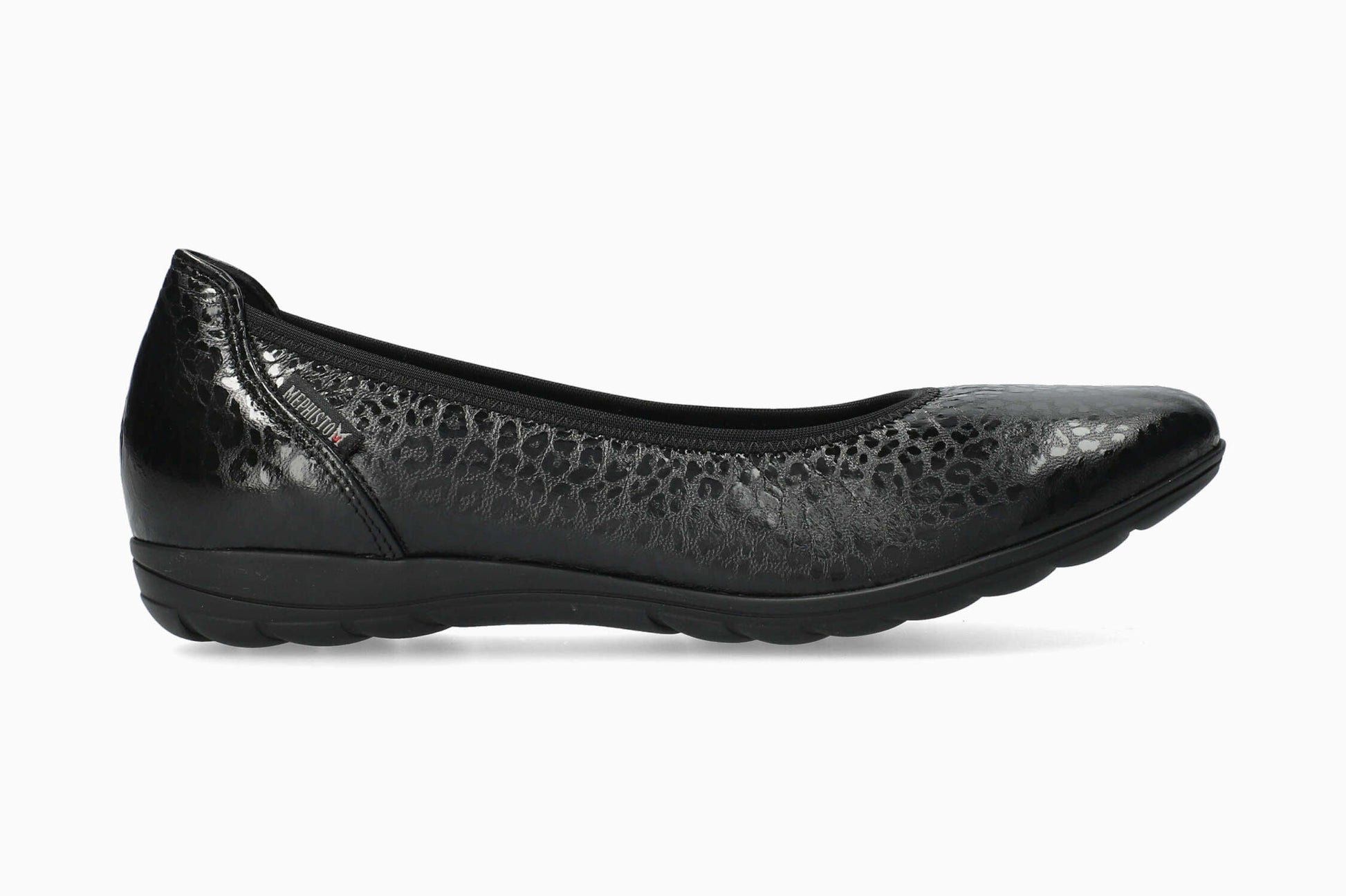 Modèle EMILIE de la marque MEPHISTO : Cette ballerine au confort incomparable se caractérise par sa légèreté. La doublure en cuir assure une hygiène saine du pied. Cette ballerine noire pour femme est composée de cuir imprimé fantaisie.