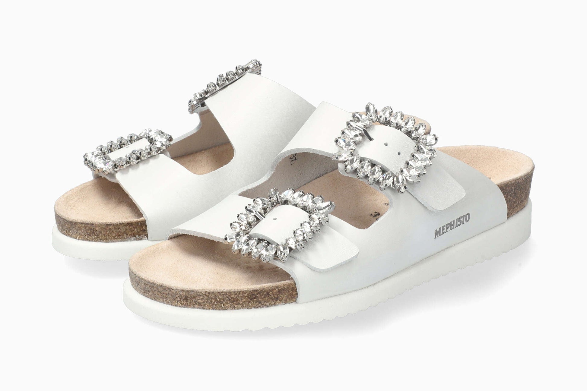 MEPHISTO HAZINA | Femme Sandales Voute Liege Blanc Cuir Lisse