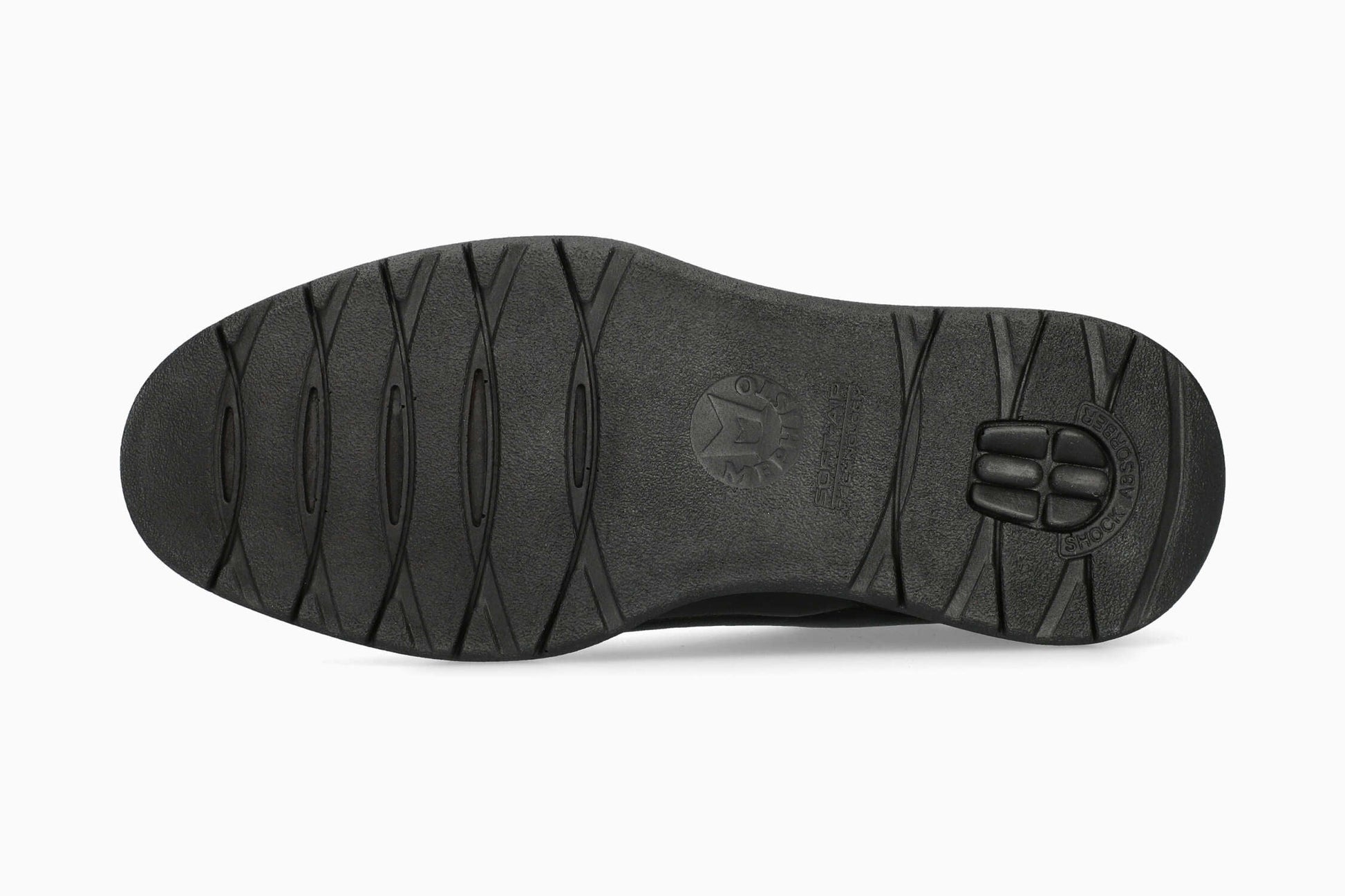 Quelle que soit votre activité, cette chaussure constitue un atout polyvalent par tous les temps. Le SHOCK-ABSORBER présent dans la semelle extérieure, associé à la semelle intérieure amovible qui intègre la SOFT-AIR Technologie, contribuent à réduire les chocs au minimum pour une marche tout en douceur et sans fatigue. Les brides auto-agrippantes ajustables sur le cou-de-pied assurent un chaussant parfait. Sa doublure est en cuir avec une touche de textile pour plus de confort. Ce modèle noir pour homme est composé de cuir lisse.