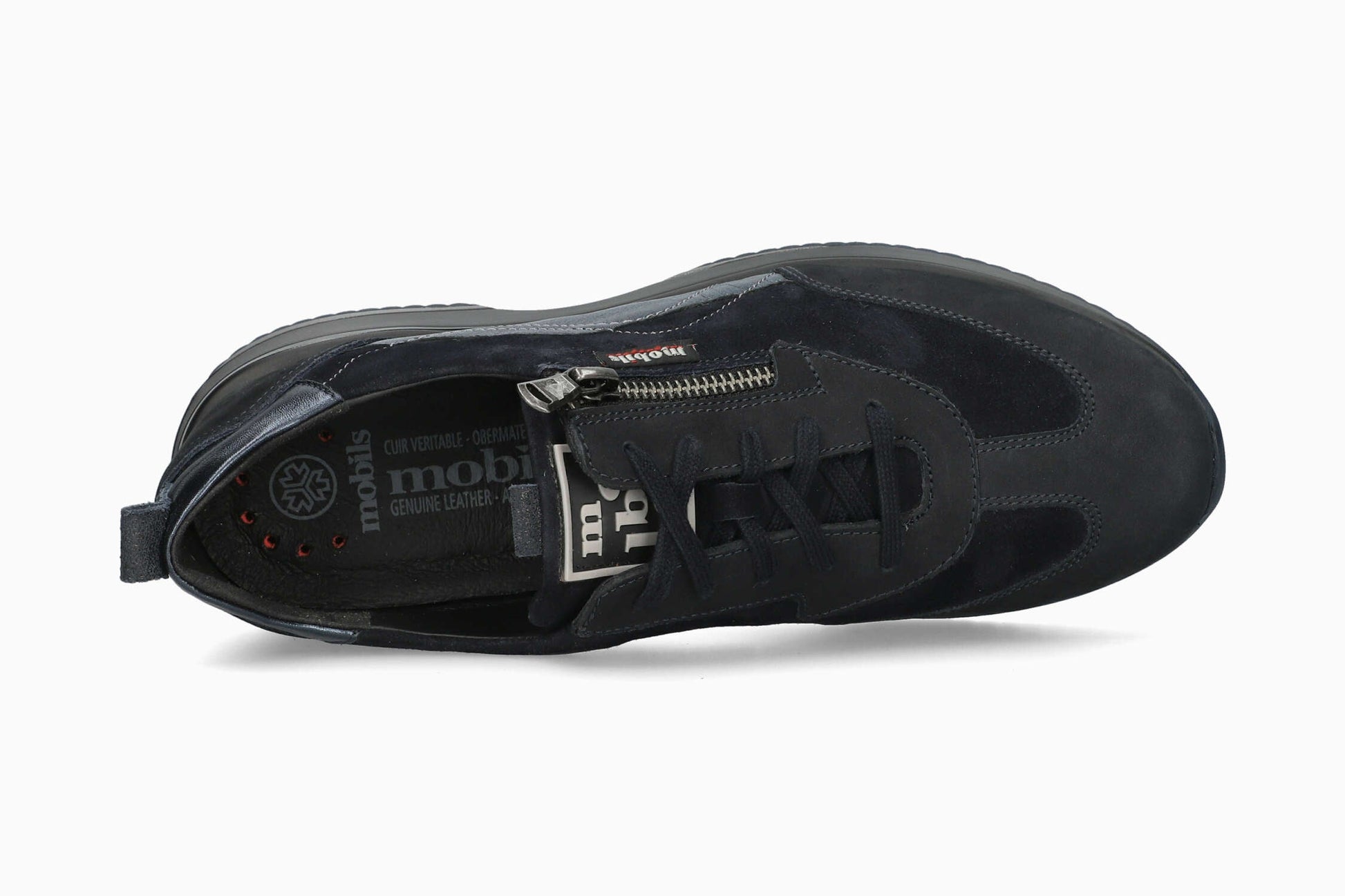 Modèle NESS de la marque MOBILS : Cette chaussure au look sport garantit un excellent chaussant. Sa doublure en cuir procure un climat sain à l'intérieur de la chaussure. Ce modèle bleu pour femme est composé de cuir velours sur l'ensemble du pied avec des empiècements en cuir nubuck et en cuir effet métallisé.