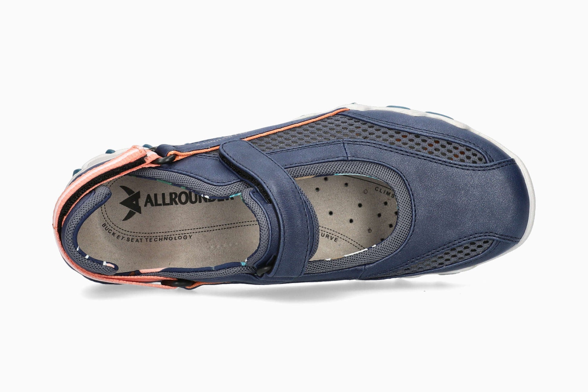 Modèle NIRO de la marque ALLROUNDER : Avec cette chaussure vous surmonterez les défis du quotidien. La bride réglable et auto-agrippante, permet un ajustement et un confort parfait. Cette chaussure pour femme dans un beau bleu se distingue surtout par son design sportif.