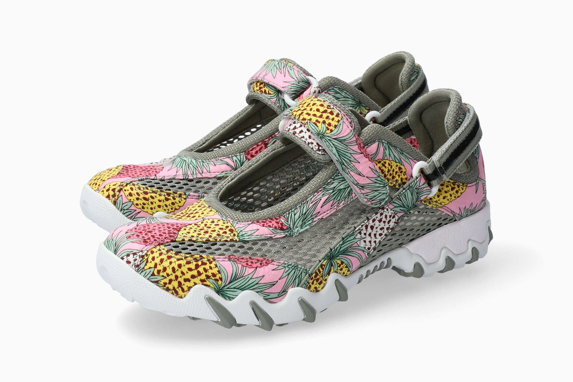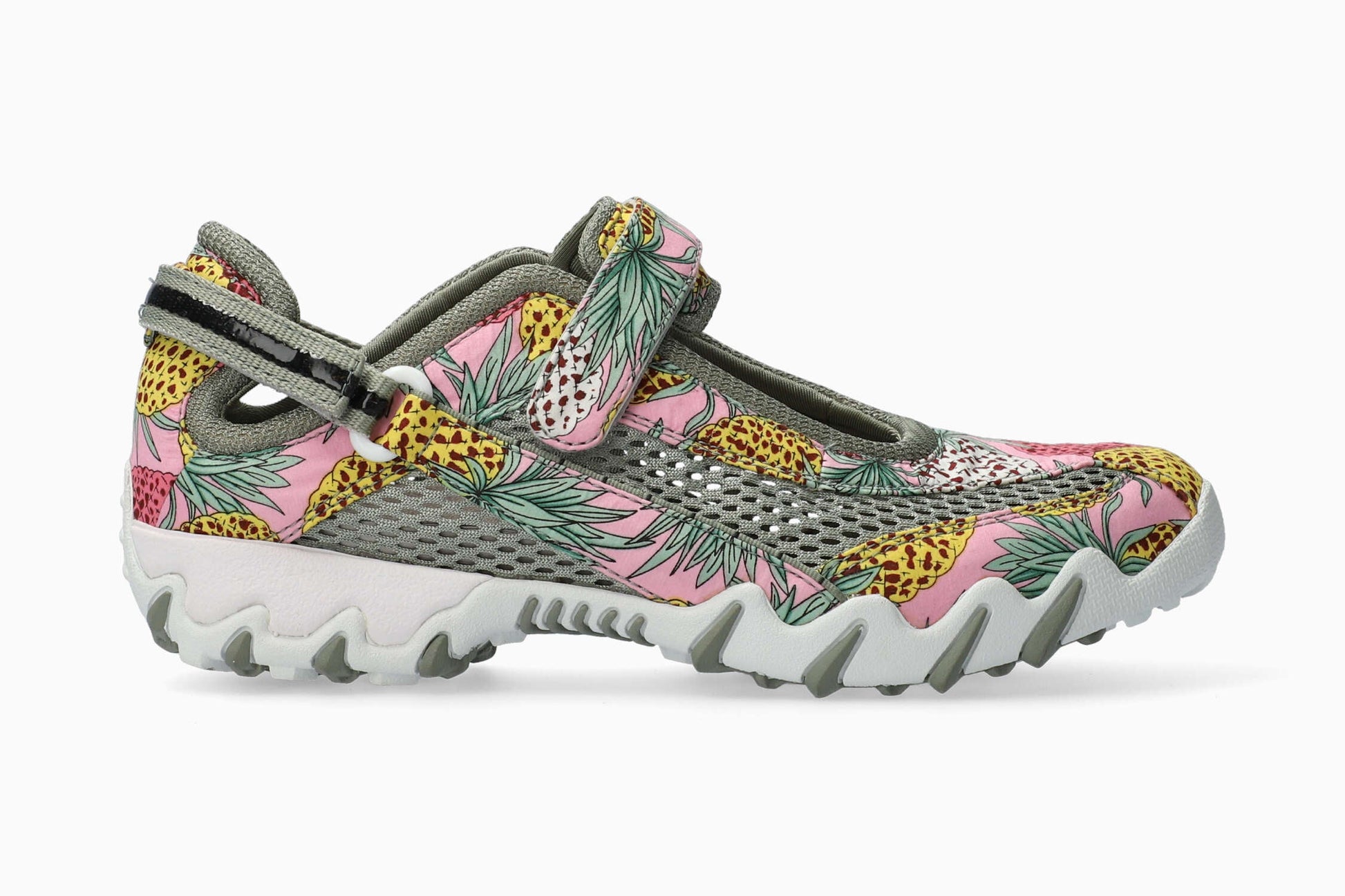Modèle NIRO de la marque ALLROUNDER : Avec cette chaussure vous surmonterez les défis du quotidien. La bride réglable et auto-agrippante, permet un ajustement et un confort parfait. Ce style dans un beau contraste de couleurs entre la semelle blanche et la tige verte avec un imprimé ananas se distingue surtout par son design sportif et perforé. Dans les tendances cette saison !
