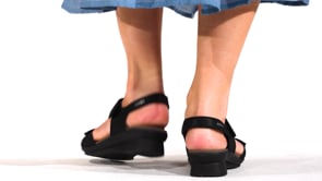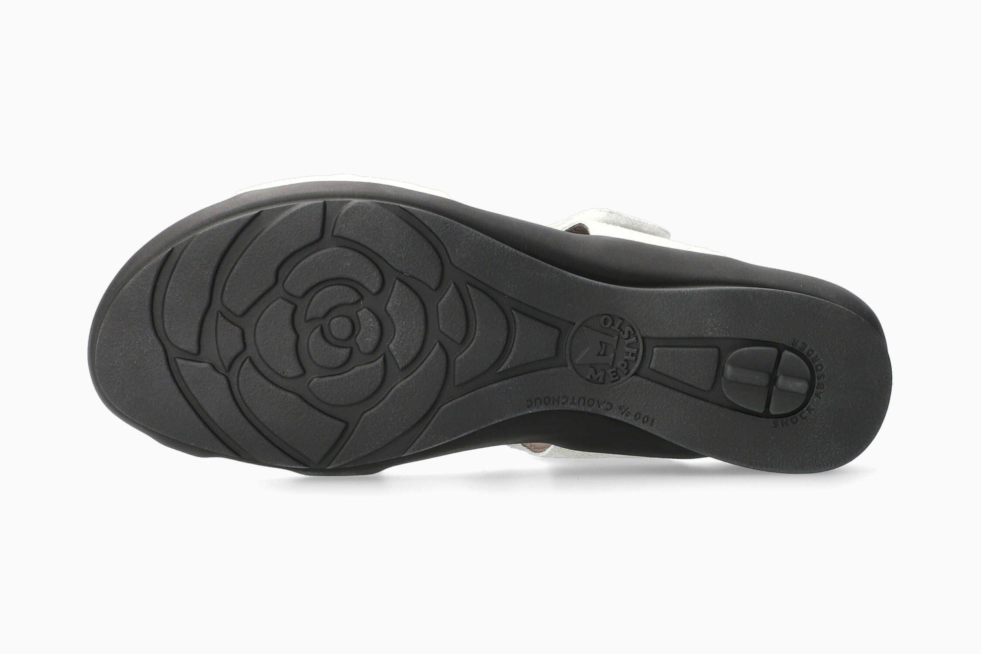 Cette sandale pour femme merveilleusement légère, au look décontracté, procure une parfaite sensation de bien-être. L'intercalaire SOFT-AIR, ainsi que le SHOCK-ABSORBER, contribuent à réduire les chocs au minimum pour une marche souple et sans fatigue. Elle allie confort et chaussant parfait grâce aux brides auto-agrippantes ajustables. Cette sandale blanche pour femme est composée de cuir effet métallisé impression fantaisie.