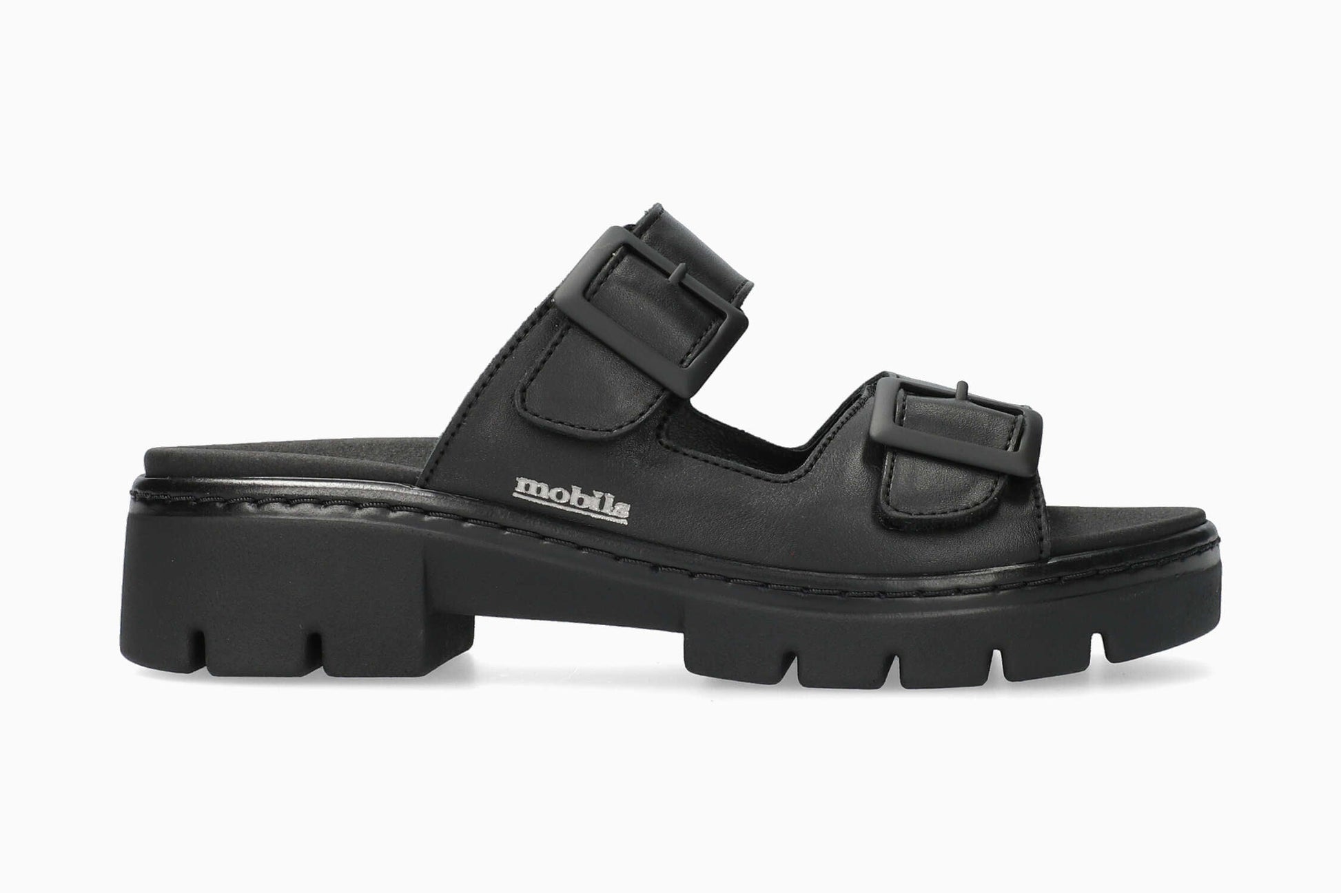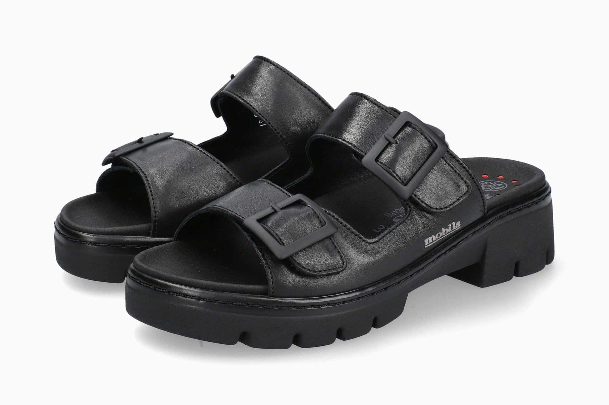 Dit vrouwelijke en modieuze muiltje garandeert een ideale pasvorm. De uitneembare binnenzool met SOFT-AIR-technologie en de buitenzool met SHOCK-ABSORBER beperken de impact tot een minimum, zodat je soepel en zonder vermoeidheid loopt. De INTEGRALE MATTRESSING zorgt voor extra comfort. Verstelbare klittenbandjes met decoratieve gespen zorgen voor een perfecte pasvorm en comfort. De leren voering zorgt voor een gezond klimaat in de schoen. Dit zwarte muiltje voor dames is gemaakt van glad leer.