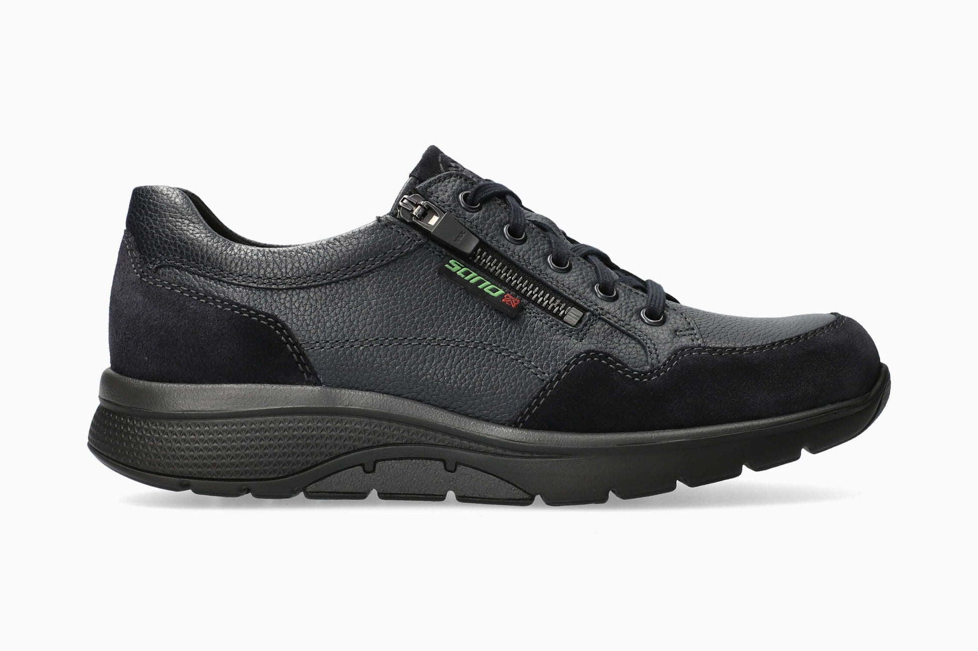 Deze sportieve sneaker combineert elegantie en comfort. De uitneembare inlegzool met SOFT-AIR Technology kan worden vervangen door een individuele inlegzool (met name orthopedisch). Het EASY-WALKING TECHNOLOGY-systeem stimuleert spieren die bij normaal lopen vaak worden verwaarloosd, stimuleert de natuurlijke beweging van de voet en werkt als schokdemper. Naast de vetersluiting zorgt een rits aan de zijkant ervoor dat de schoen gemakkelijk en moeiteloos aan te trekken is. De leren voering garandeert een onvergelijkbaar comfort en pasvorm. Dit blauwe model voor heren is gemaakt van suèdeleer aan de voor- en achterkant van de voet en glad generfd leer over de hele voet.
