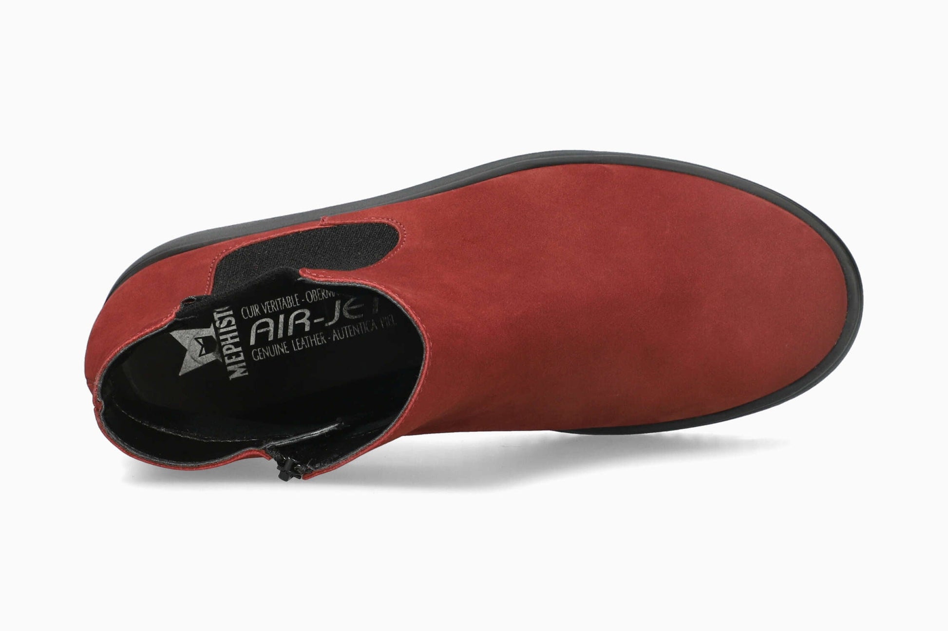 Deze casual enkellaars biedt een geweldige pasvorm en optimaal comfort. De uitneembare binnenzool met SOFT-AIR Technology en SHOCK-ABSORBER in de buitenzool helpen allemaal om de impact van het lopen te verminderen en zorgen voor een gezond klimaat in de laars. Naast de ritssluiting aan de binnenkant zorgt het elastiek aan de buitenkant van de schoen ervoor dat je de schoen gemakkelijk en moeiteloos aan kunt trekken. De zachte, warme voering biedt thermisch comfort voor je voeten. Deze rode enkellaars voor dames is gemaakt van nubuckleer.